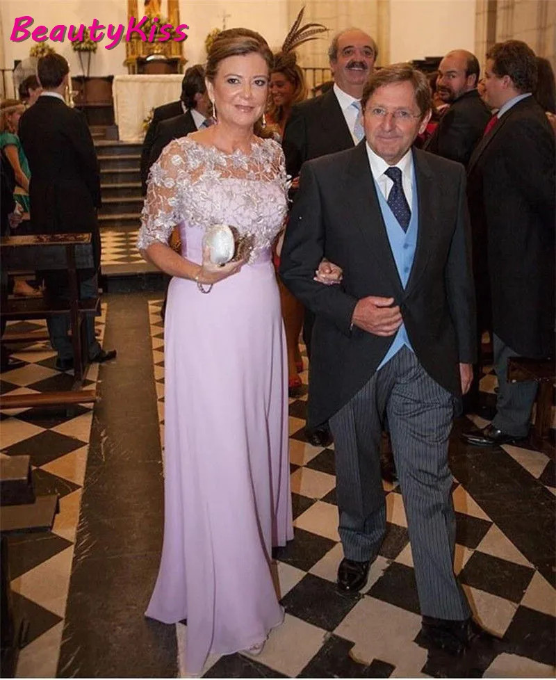 Lilac Mother Of The Bride Dresses Appliques Groom Mother Dress Evening Dress