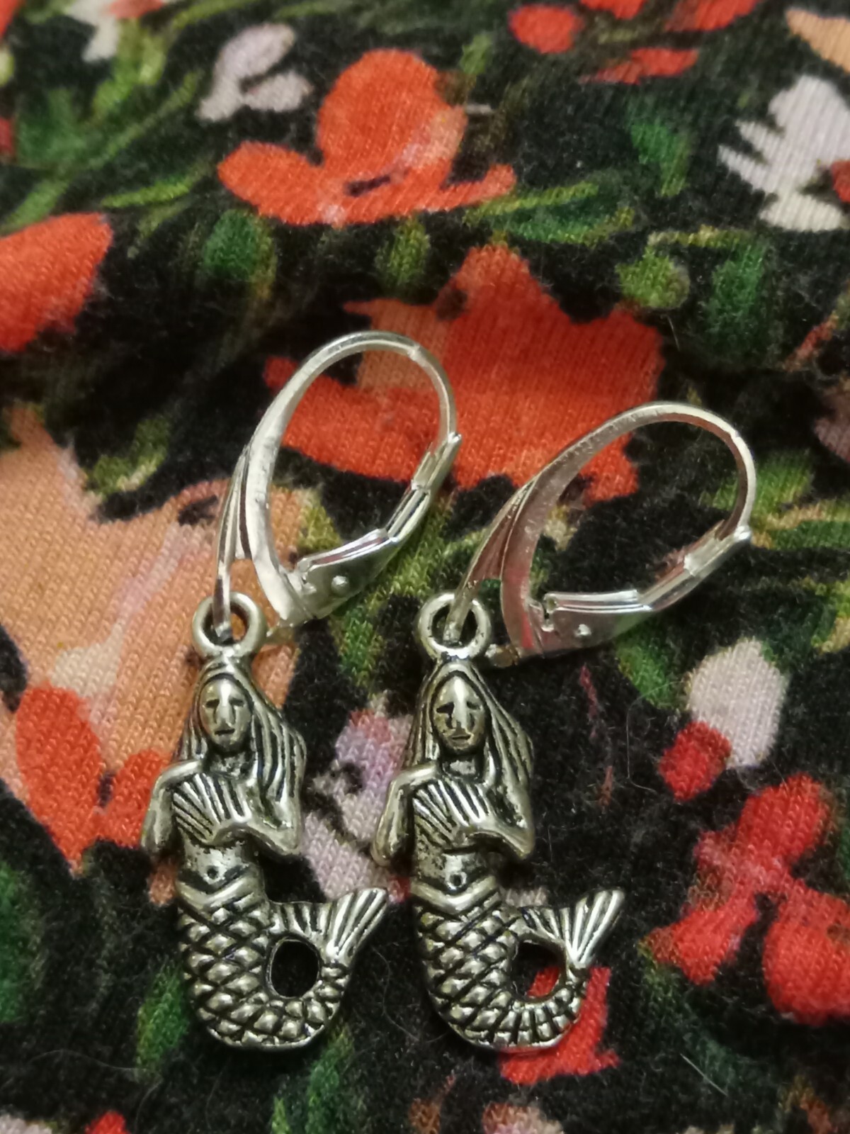 925 Sterling Silver Filled 3D Mermaid Charm Euro Lever Earrings Little Fish Girl