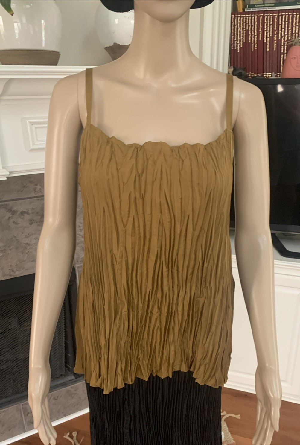 как выглядит NWT Eileen Fisher Bronze Crushed Silk Cami Size M/M MSRP 158 фото