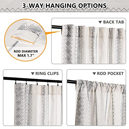 Boho Curtains 84 Inches Long Curtains 50W x 84L Pack of 2 Geometric-grey