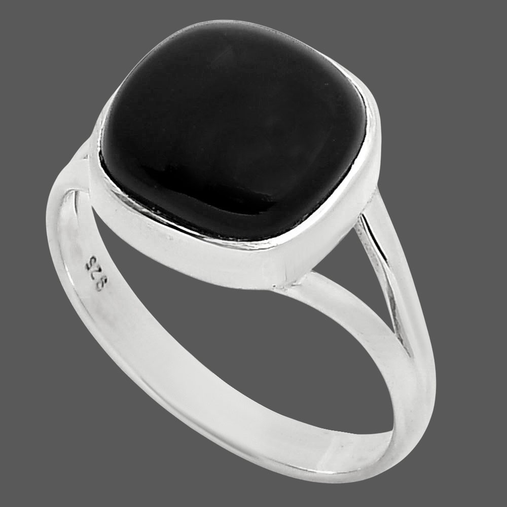 Natural Black Onyx - Brazil 925 Sterling Silver Ring s.8 Jewelry R-1005