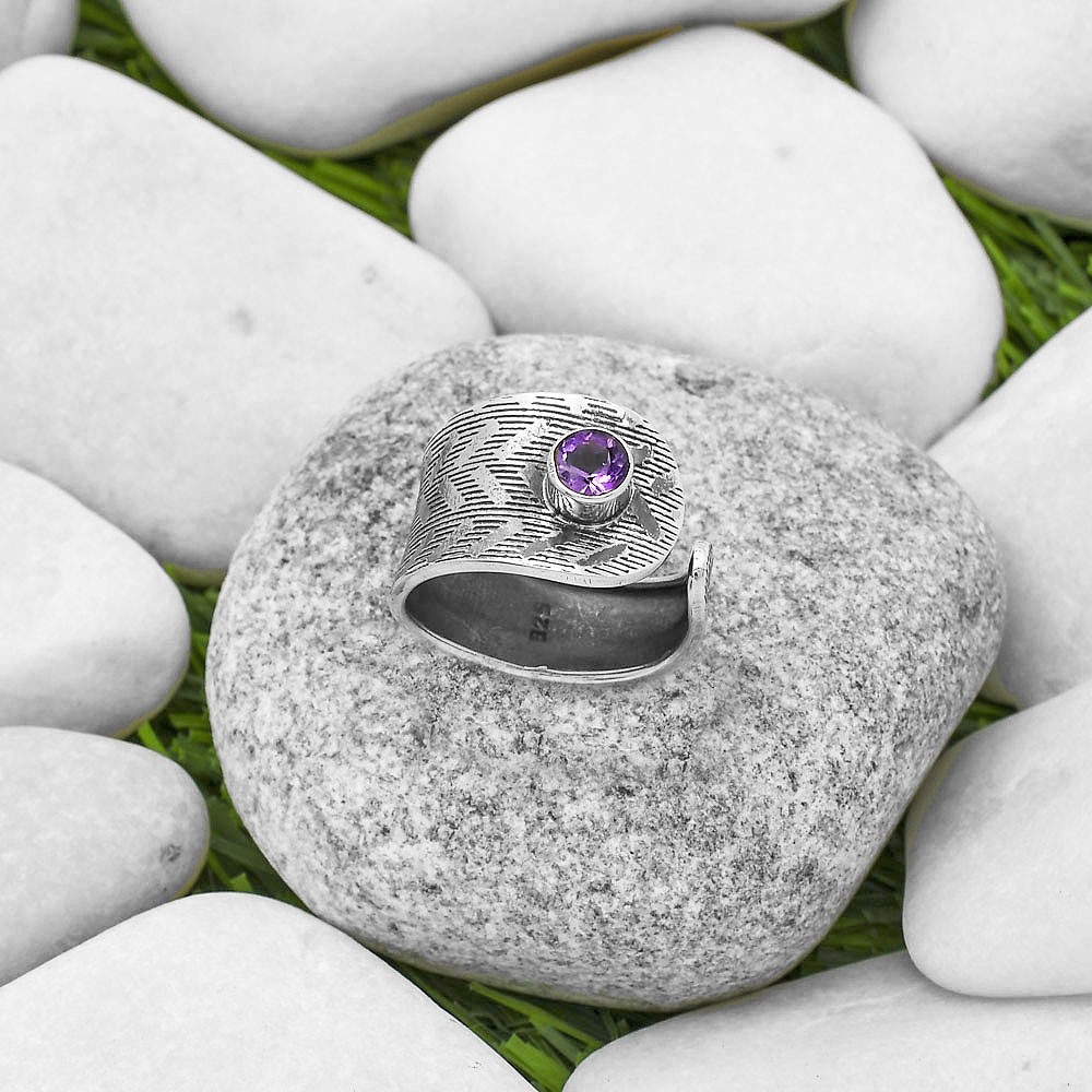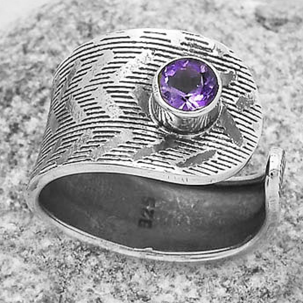 как выглядит Adjustable Natural Amethyst Brazil 925 Sterling Silver Ring s.8 Jewelry R-1319 фото