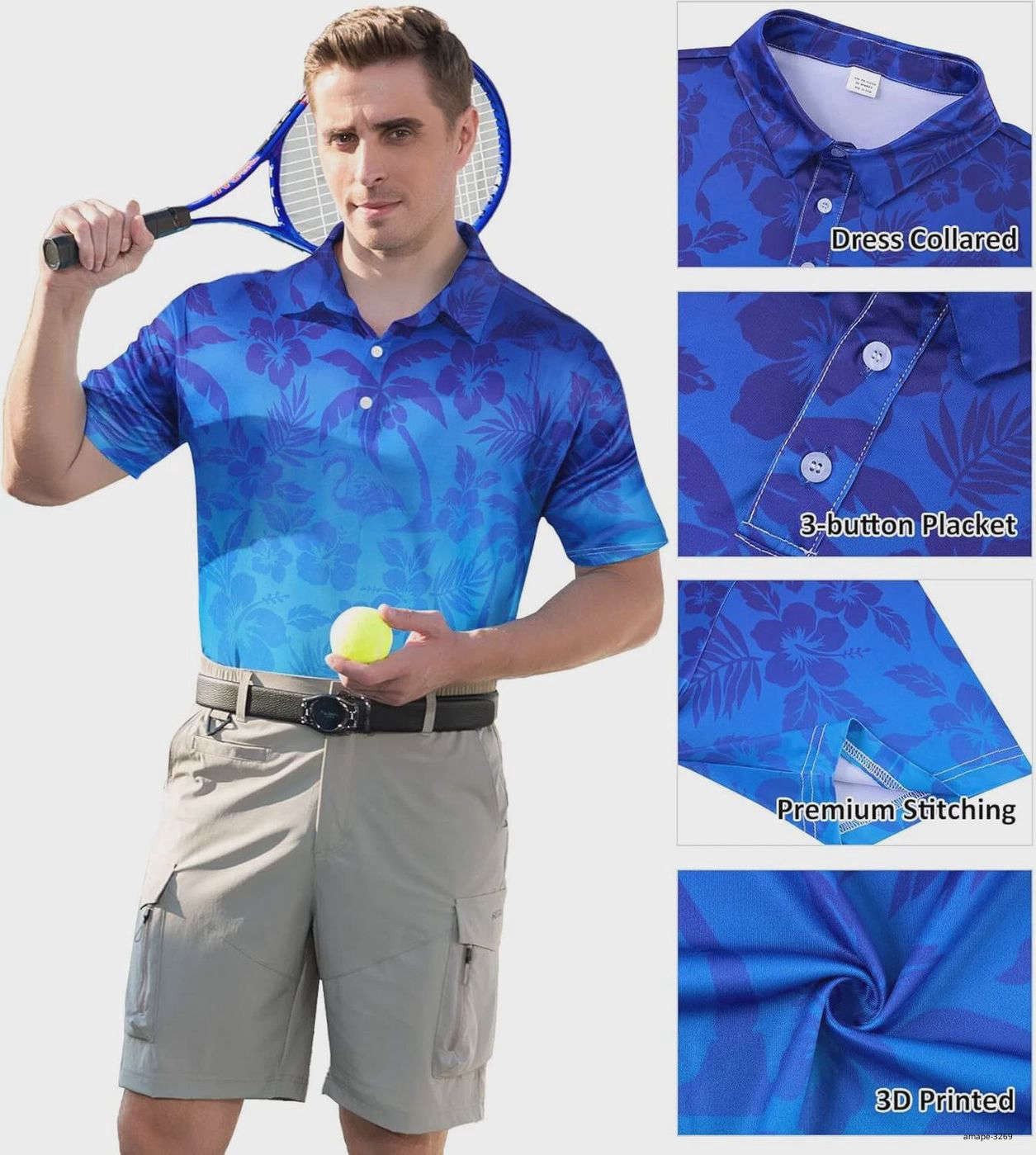 Mens Polo Shirt Dry Fit Moisture Wicking Short Sleeve 3D Print Funny Golf Top