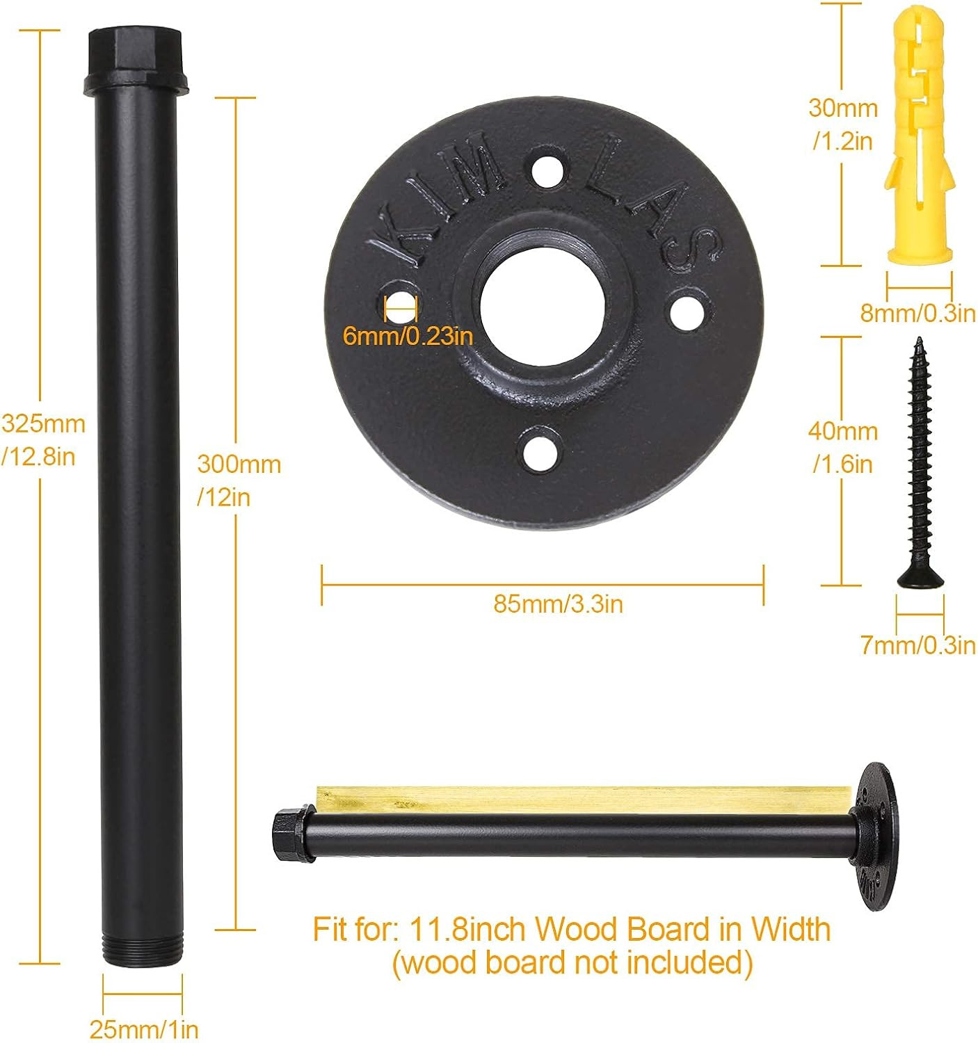 Industrial Pipe Shelf Brackets - 6 Pack 12 Inch Black Heavy Duty Metal Support