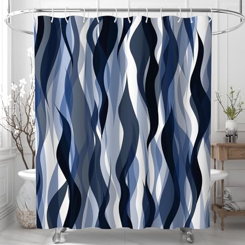 Black Art Striped Shower Curtain Abstract Wavy 72W x 72L Pack of 1 Blue