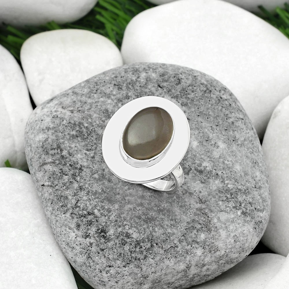 Natural Gray Moonstone 925 Sterling Silver Ring s.8 Jewelry R-1082