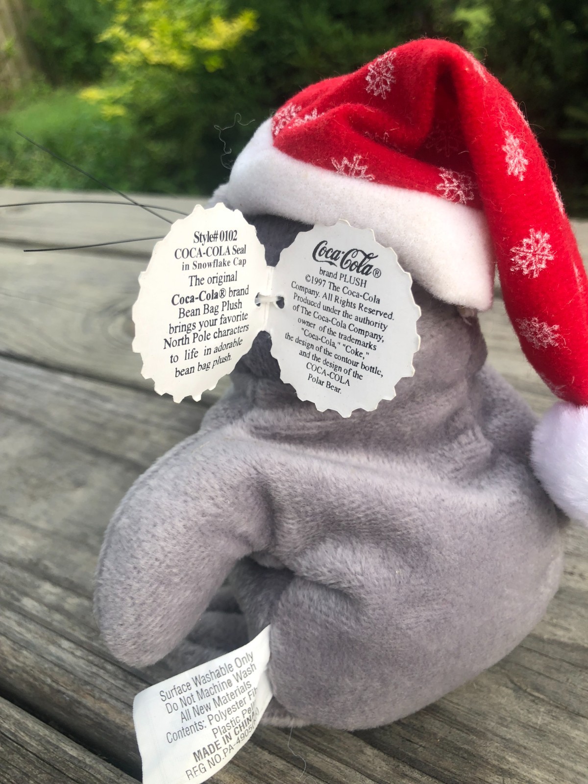 как выглядит 1997 Coca Cola Plush Seal In Snowflake Cap 0102 Beanie With Tag фото