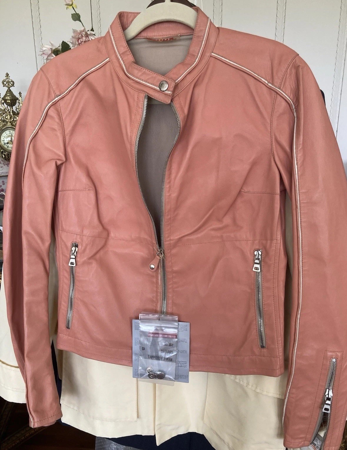 New Vintage PRADA Milano Nappa Leather Coral Biker Jacket Sz 42 Art.148138 2175