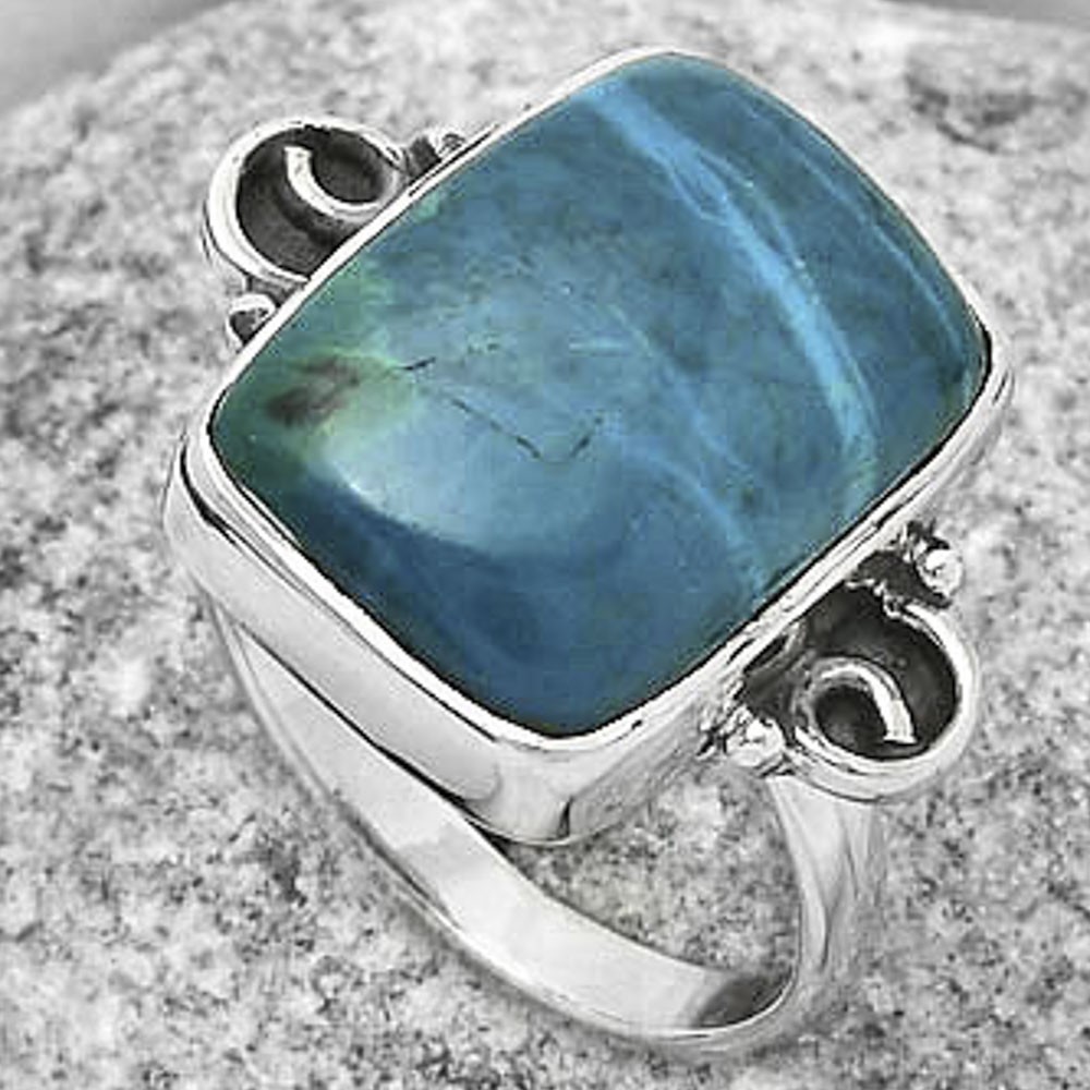 как выглядит Natural Azurite Chrysocolla 925 Sterling Silver Ring s.7 Jewelry R-1218 фото