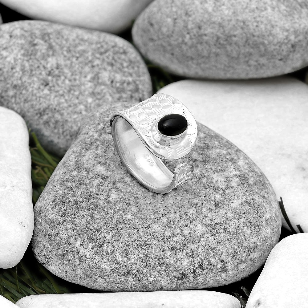 как выглядит Adjustable - Black Onyx - Brazil 925 Sterling Silver Ring s.6.5 Jewelry R-1319 фото