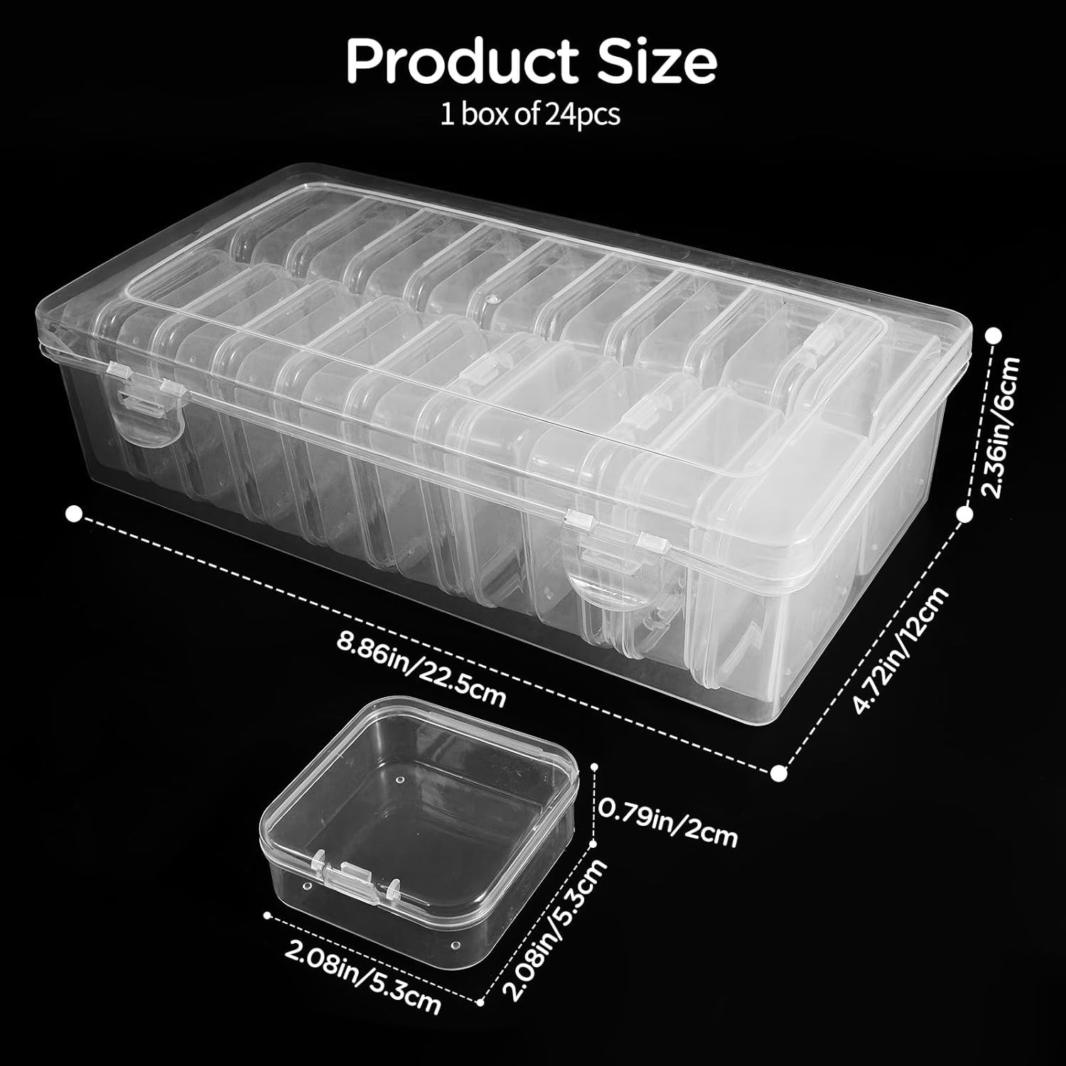 24Pack Bead Organizer Box With Hinged Lid -24Pack 2.15 X 2.15 X 0.8inch