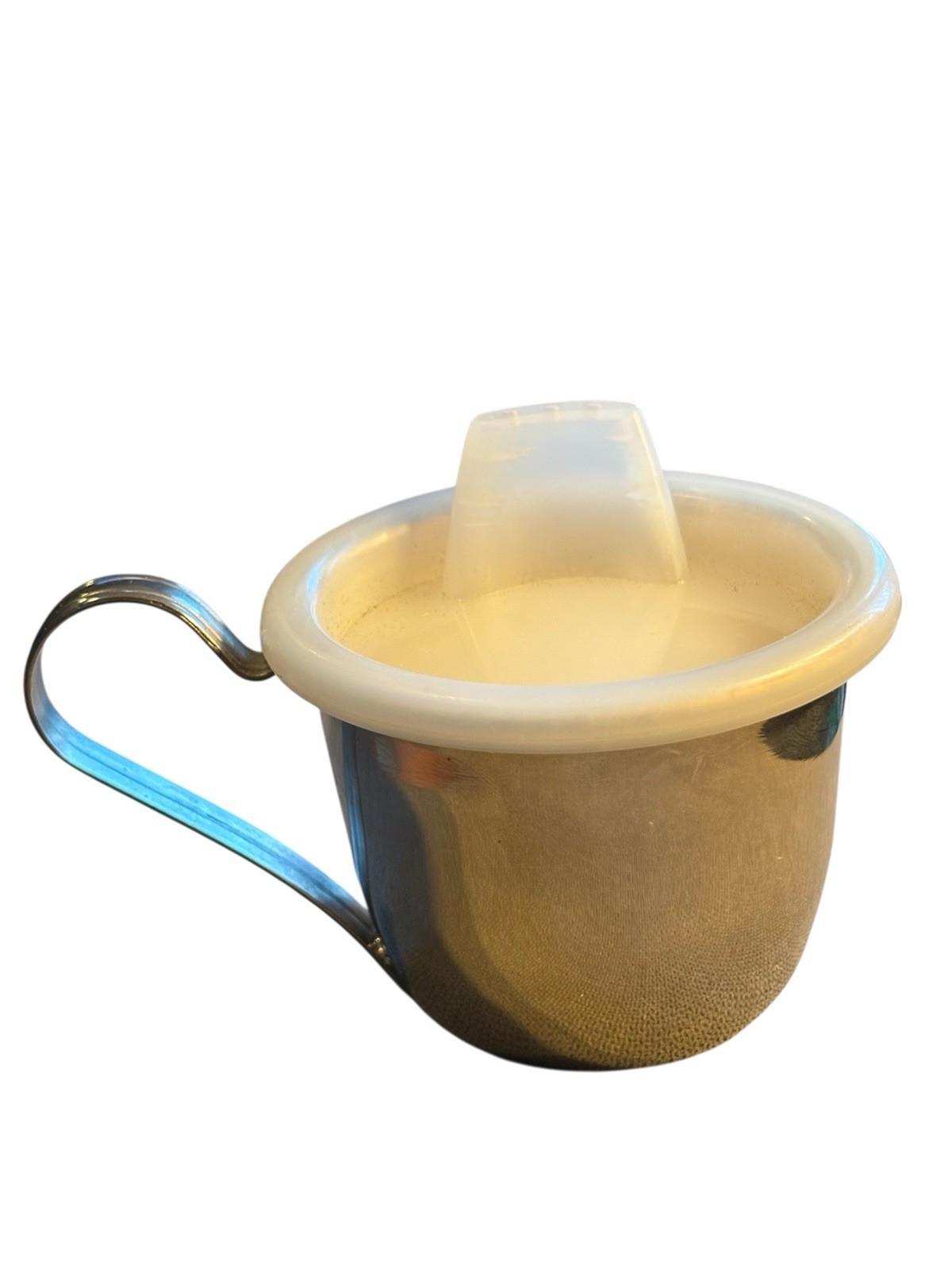 Silver Plated Toddler Sippy Cup Bear Design Handle and Lid Vintage Baby Feeding