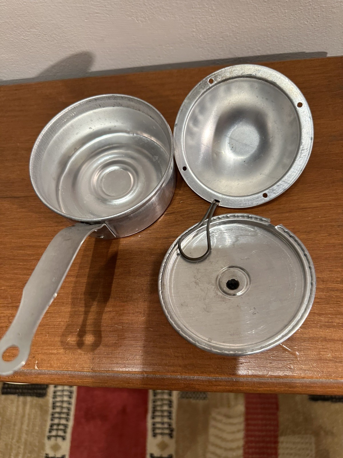 как выглядит Vintage Childs Aluminum pot with inner pot and lid фото