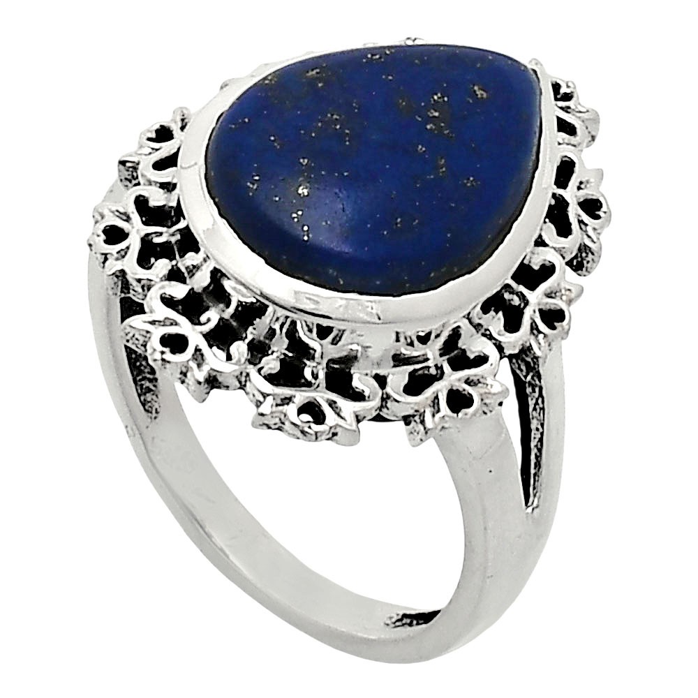 как выглядит Natural Lapis Lazuli 925 Sterling Silver Ring Size 7 Blue Gemstone R-1114 фото