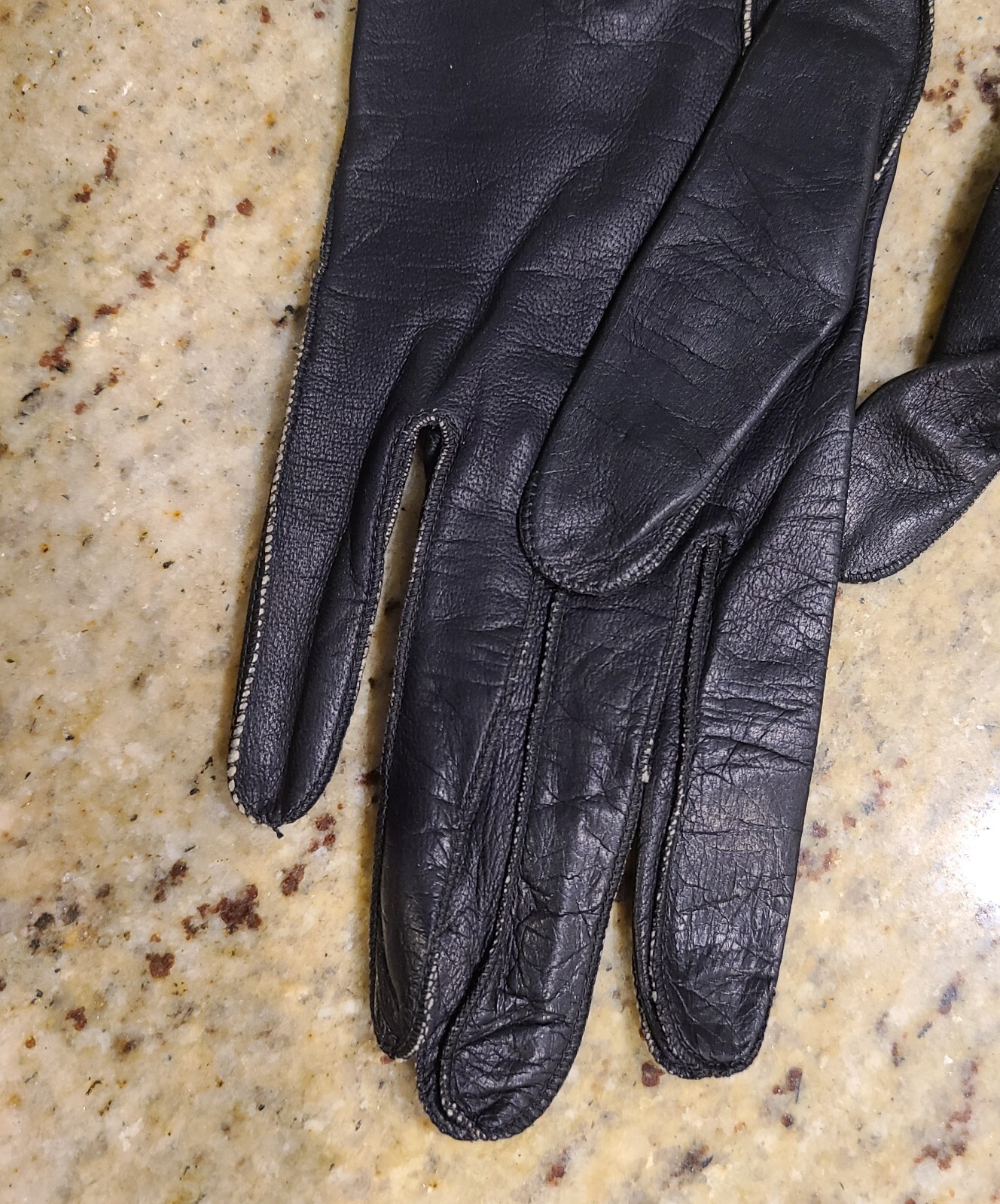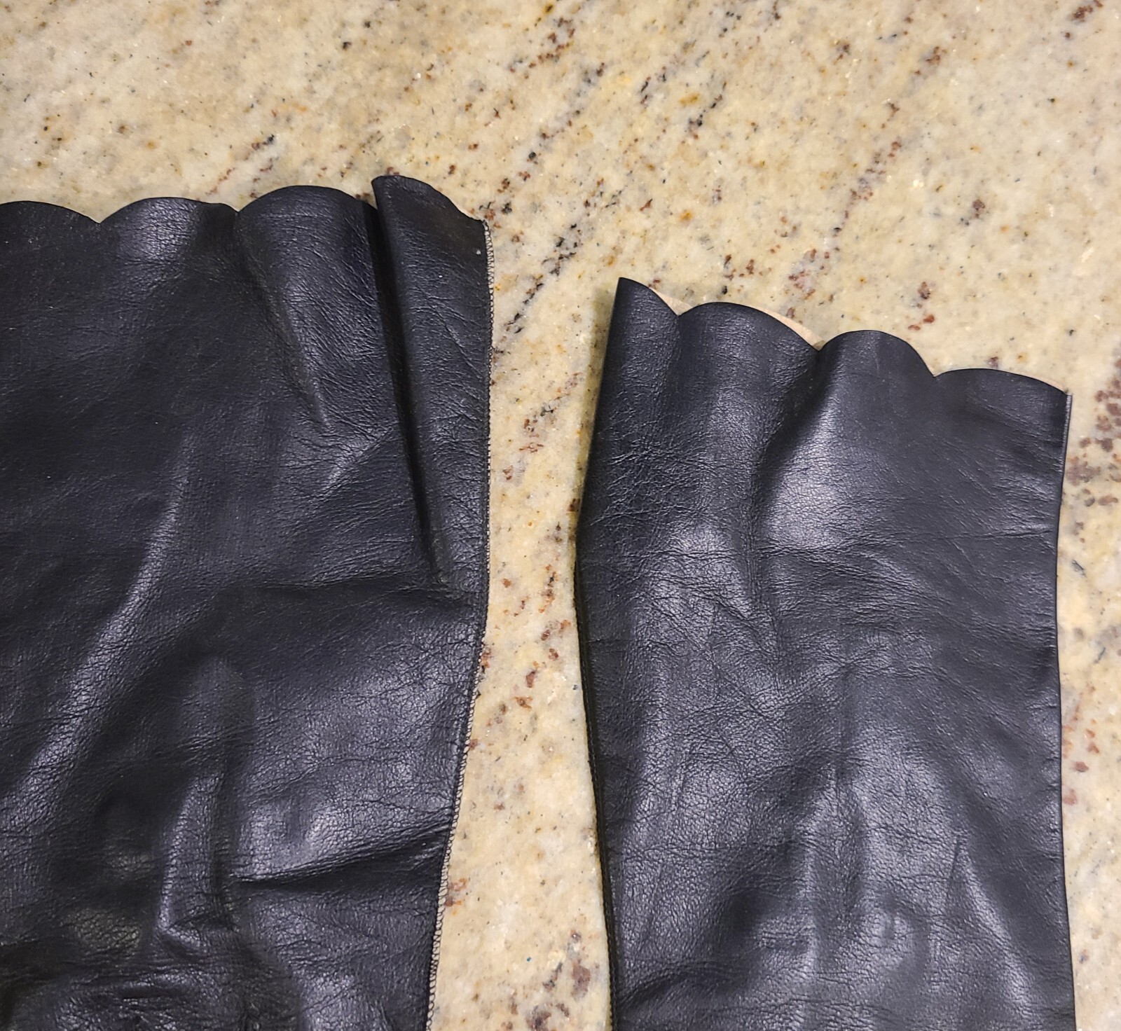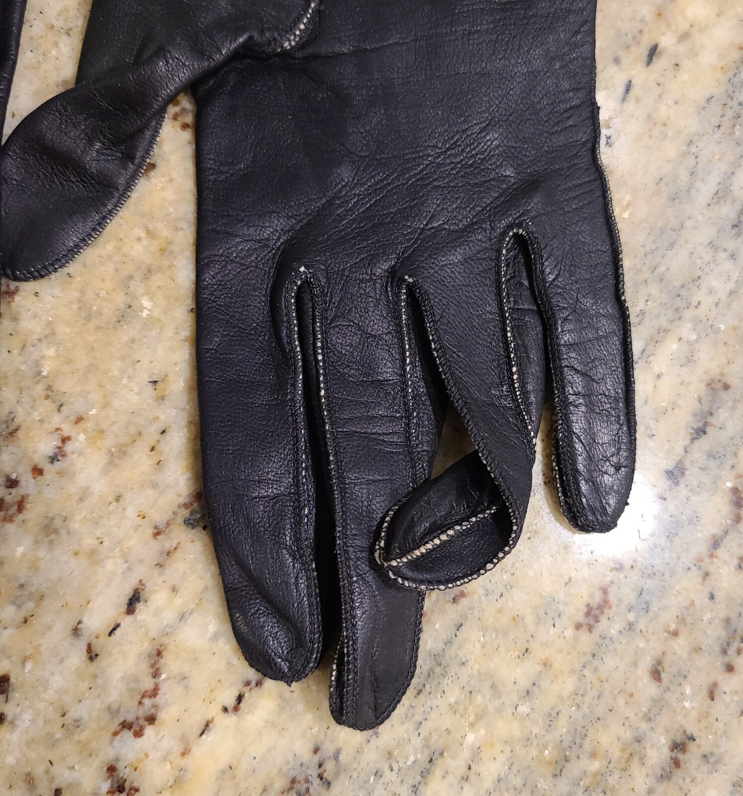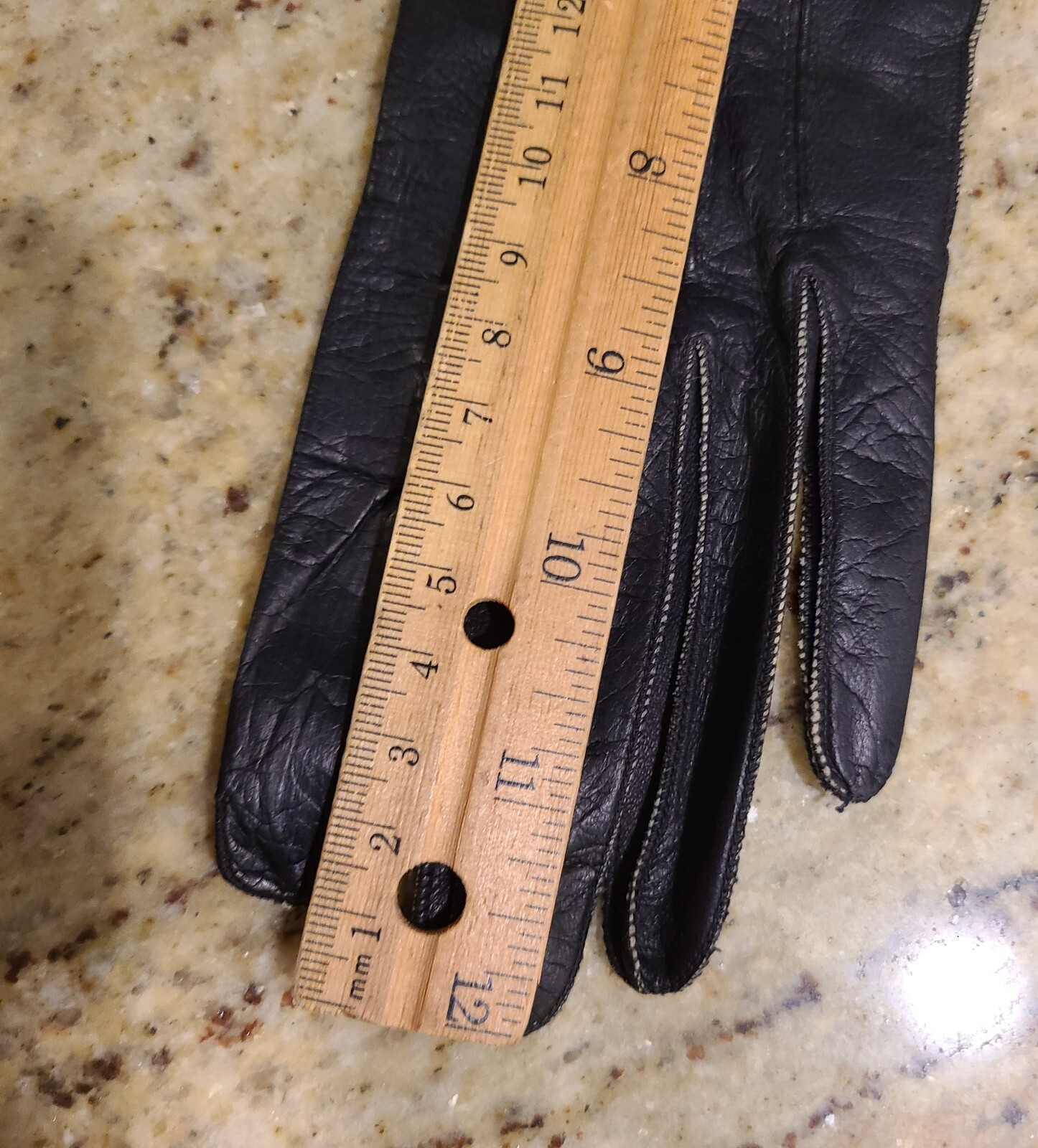 как выглядит Vintage Size S 6.5 Black Leather Formal 12" Long Gloves Scallop Edge Wrist Snap фото