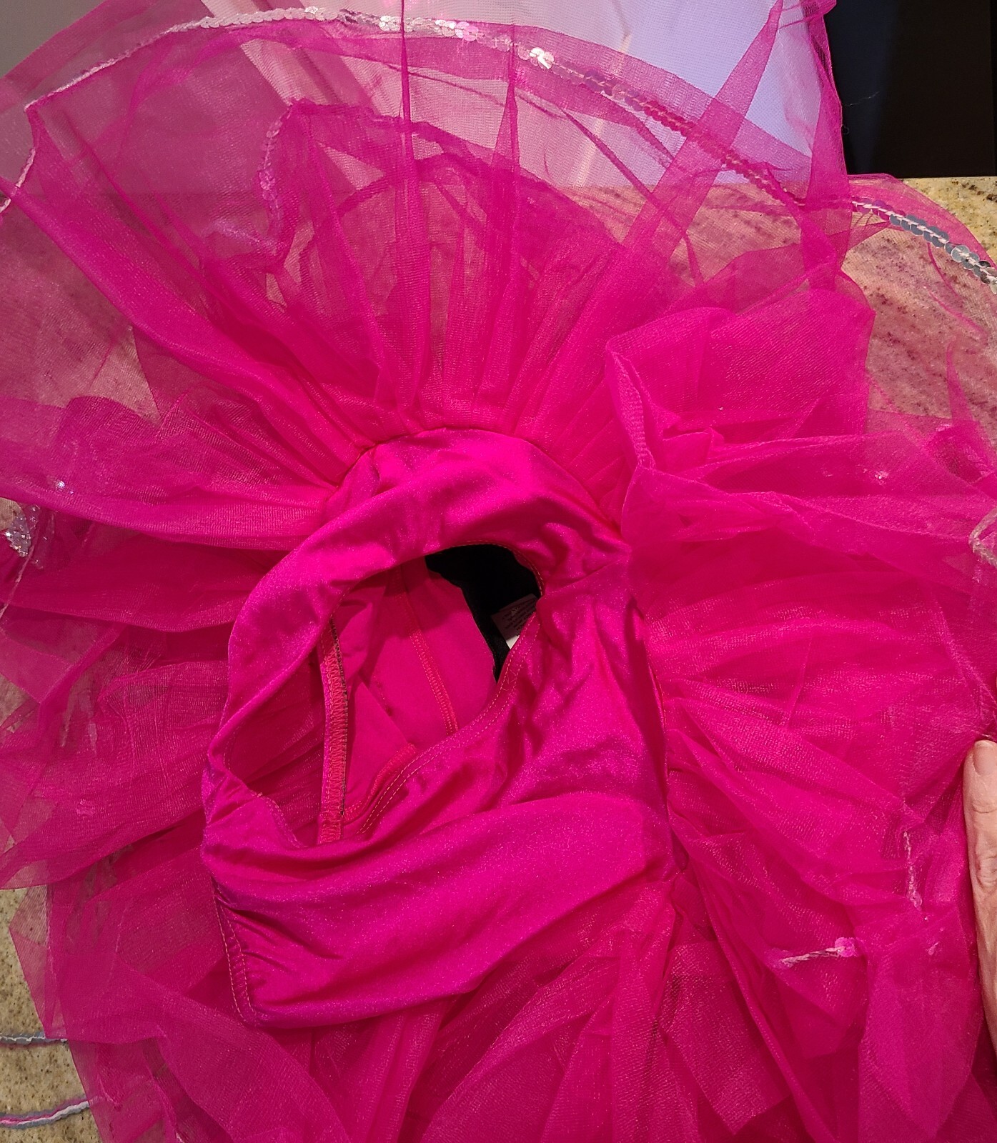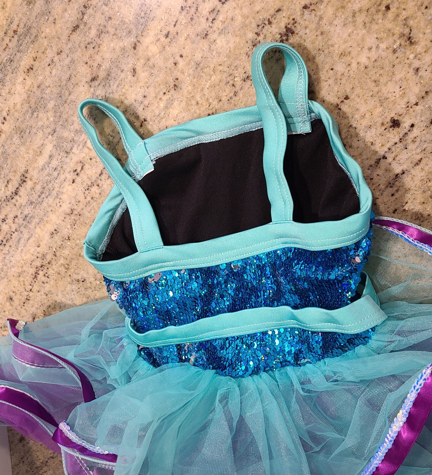 как выглядит Girls Dance Costume Weissman Child XS Pink Green Sequin 64830 Flaw фото