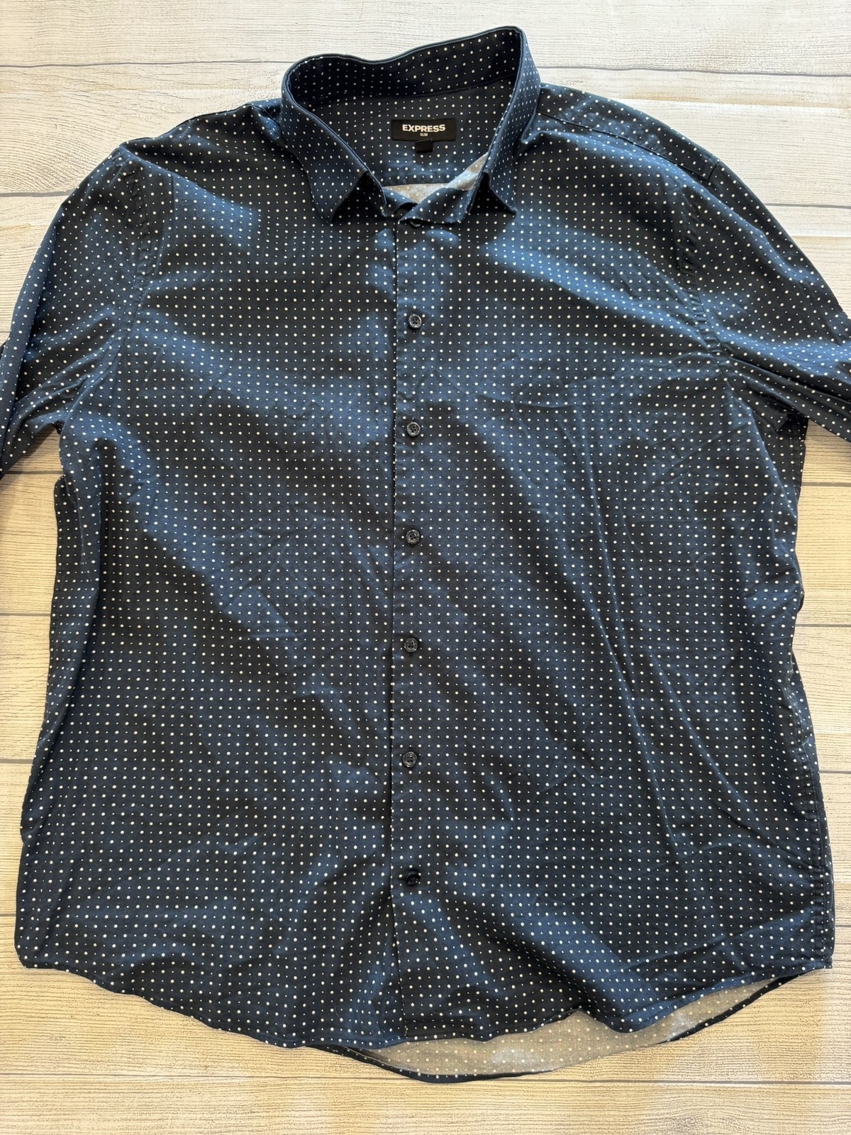 как выглядит Express Shirt Mens XL Slim Fit Button Up Long Sleeve Polka Dot Casual Dress Shir фото
