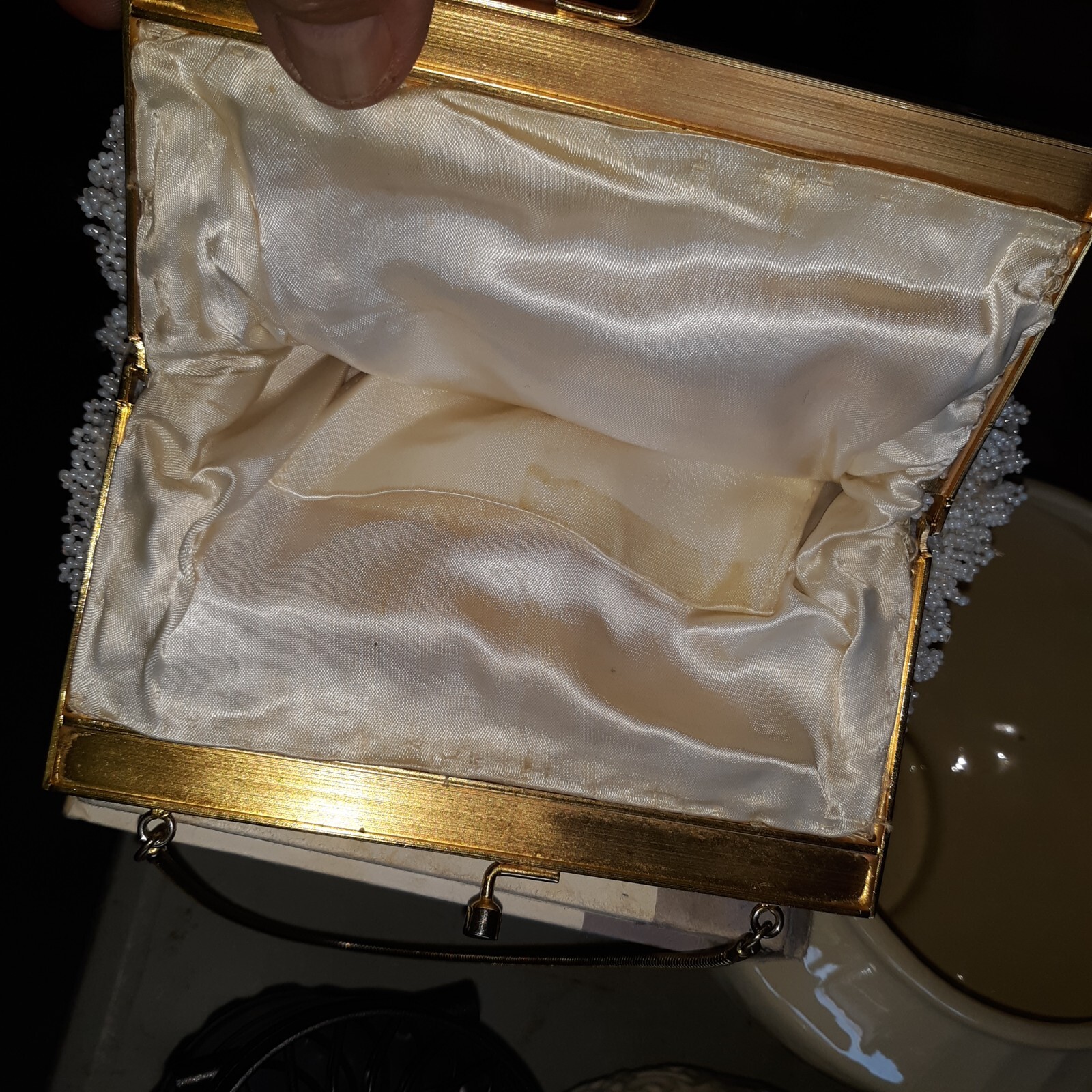 как выглядит Vintage Beaded Sequin Pearl Cream Clutch/ Mini Bag - Wedding Prom Formal фото