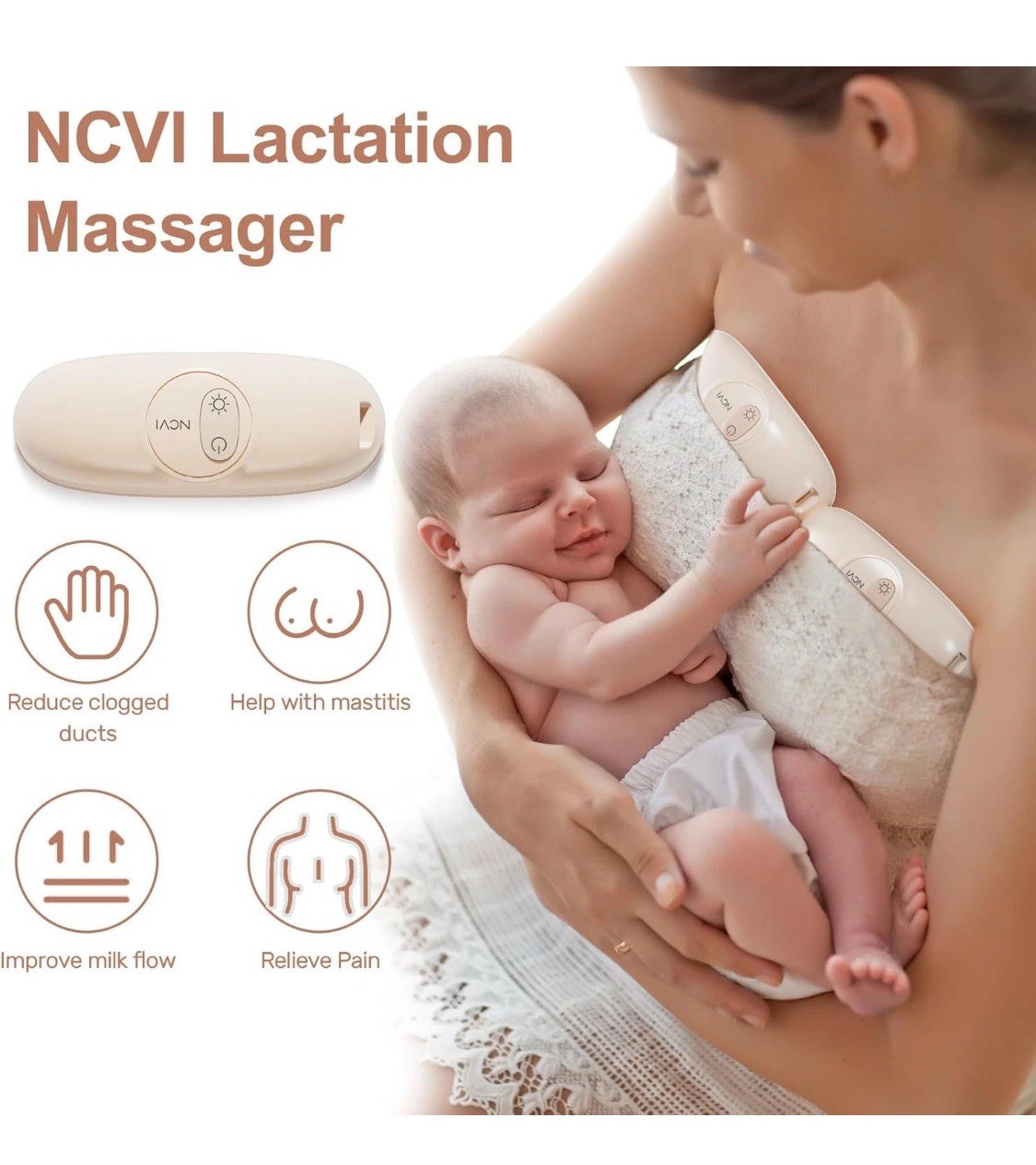 NCVI Warming Lactation Massager 2-in-1, Breast for Breastfeeding, READ