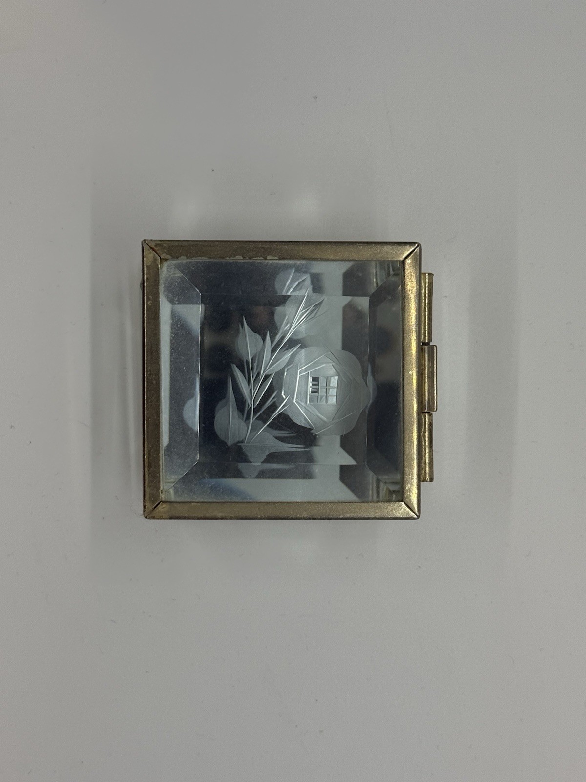 Vintage Glass Brass Jewelry Trinket Box Etched Floral Lid 2.5 Square