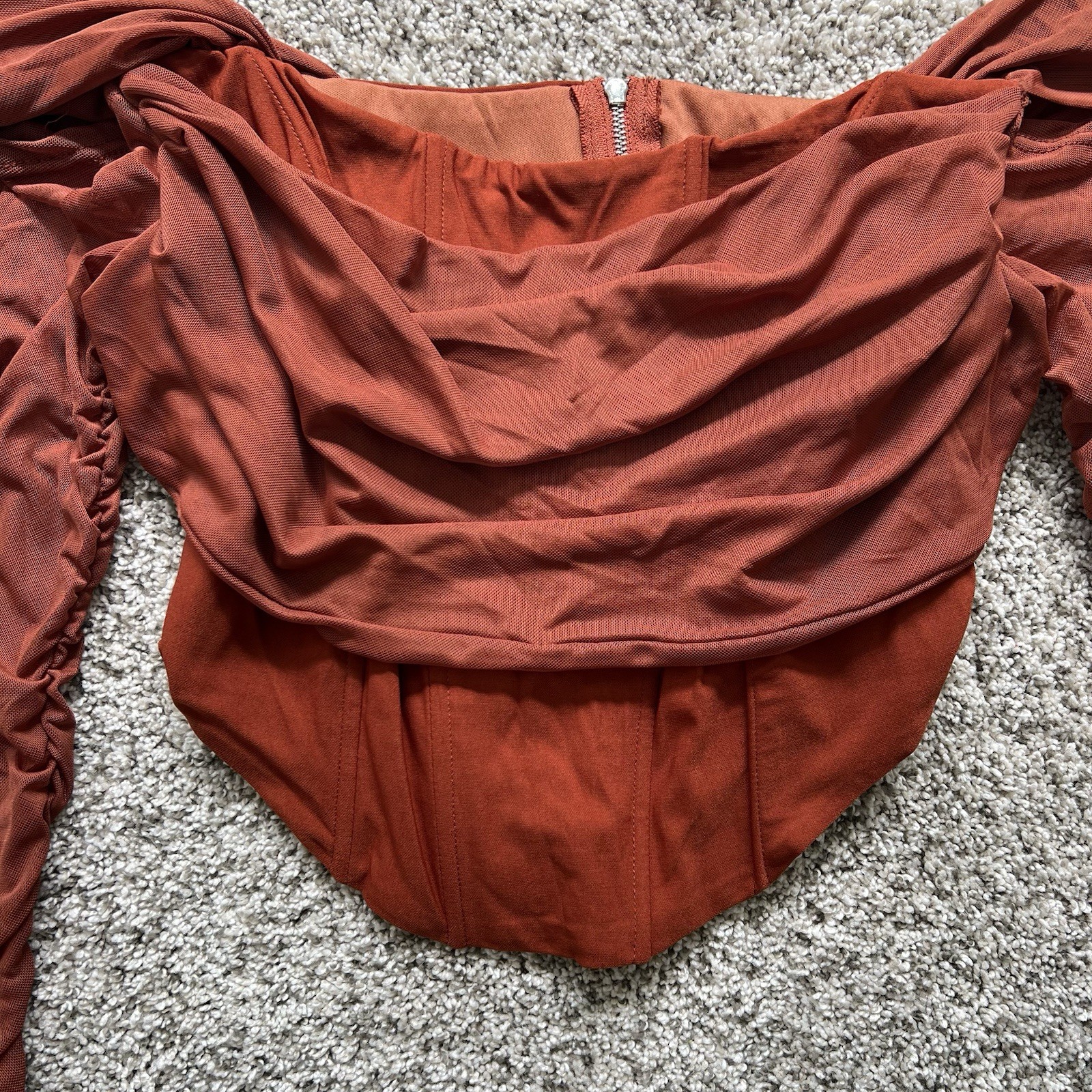 как выглядит Womens Sheer Crop XL Corset Ruched Ruffle Off Shoulder Mesh Cropped Long Sleeve фото