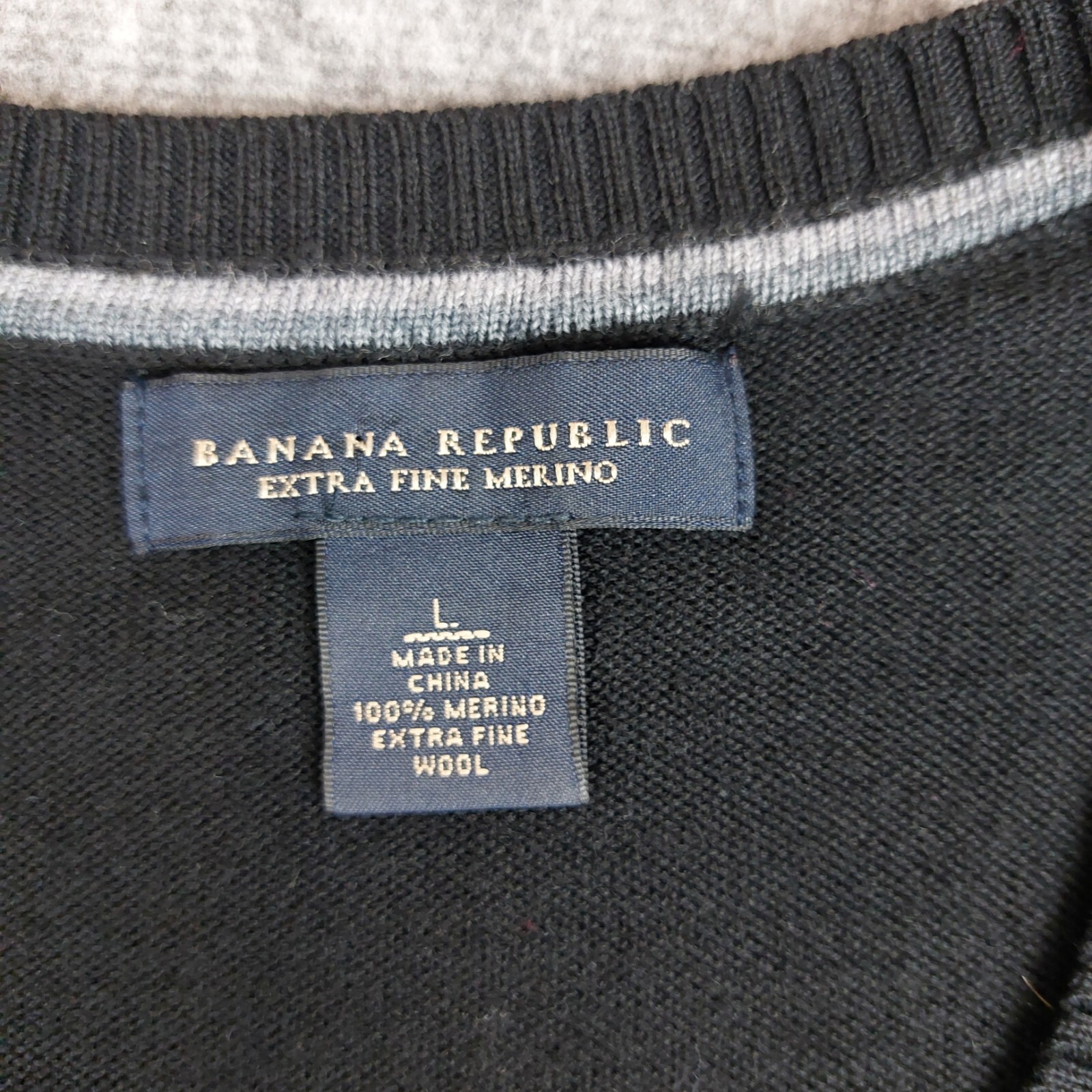 Banana Republic Mens L V-Neck Pullover Sweater Black 100 Extra Fine Merino Wool