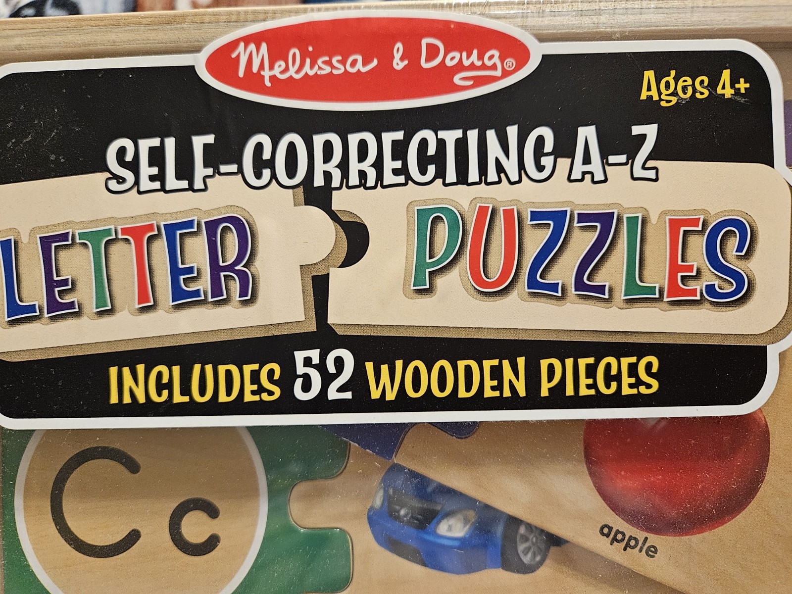 Puzzle Melissa Doug Self-Correcting Alphabet Wooden with Storage Box 52 Pcs