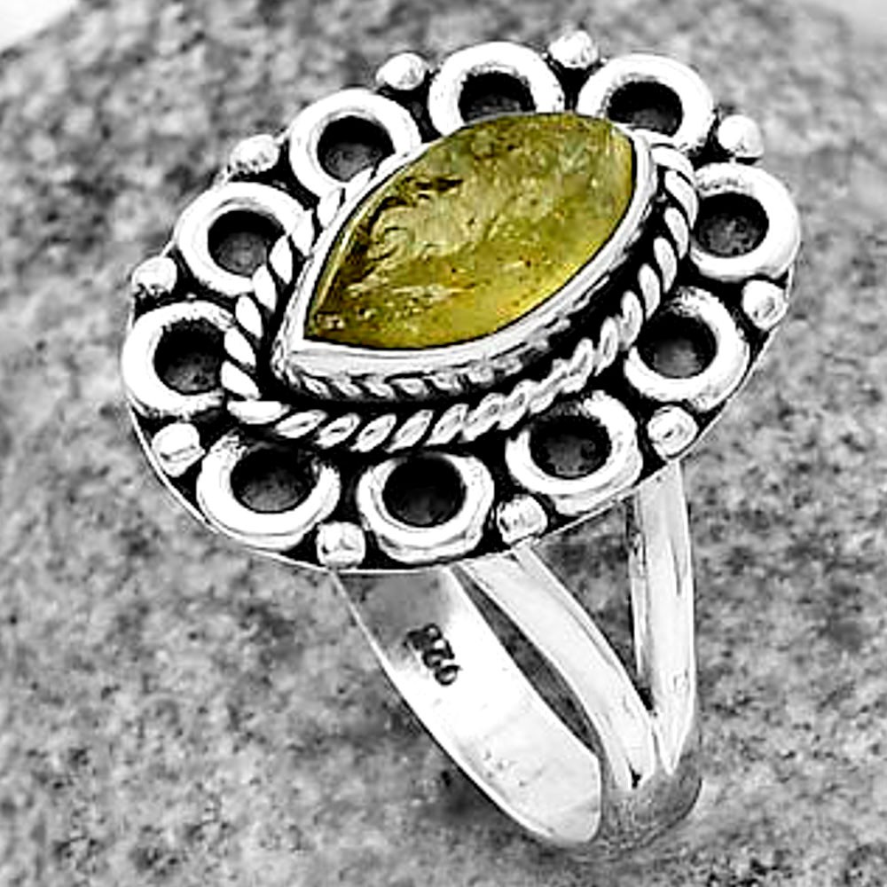 как выглядит Natural Peridot Rough 925 Sterling Silver Ring s.8 Jewelry R-1256 фото