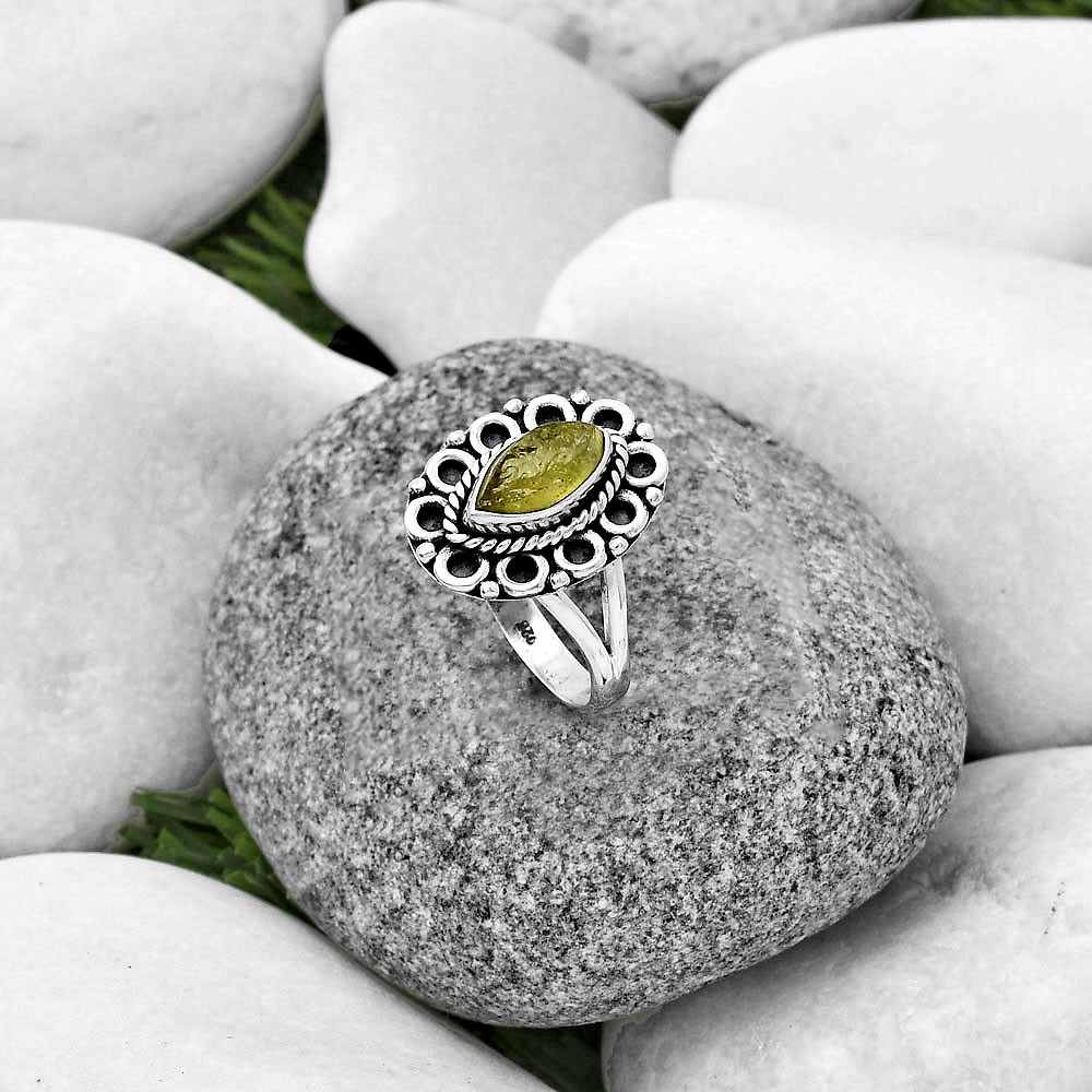 Natural Peridot Rough 925 Sterling Silver Ring s.8 Jewelry R-1256