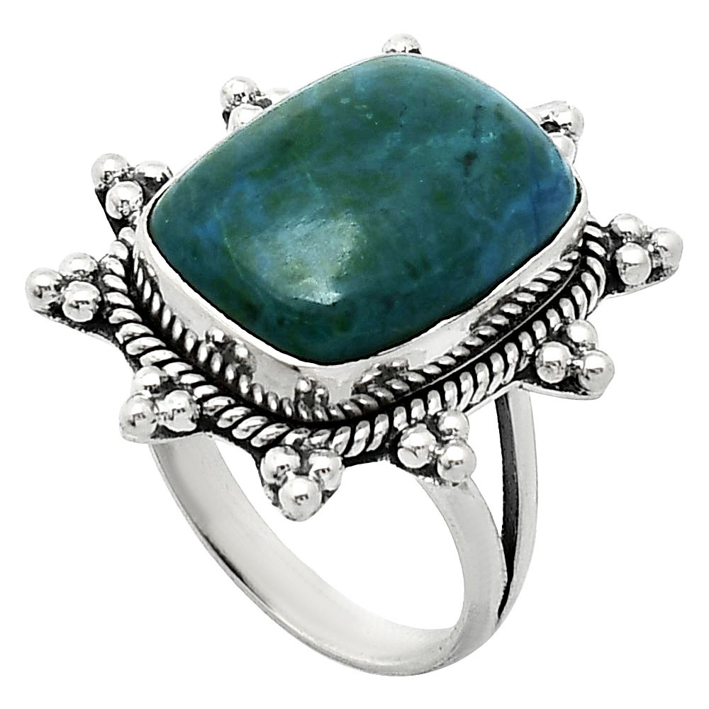 как выглядит Azurite Chrysocolla 925 Sterling Silver Ring Size 9 Natural Blue Stone фото