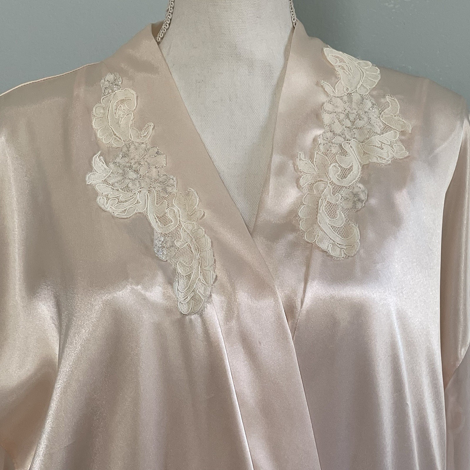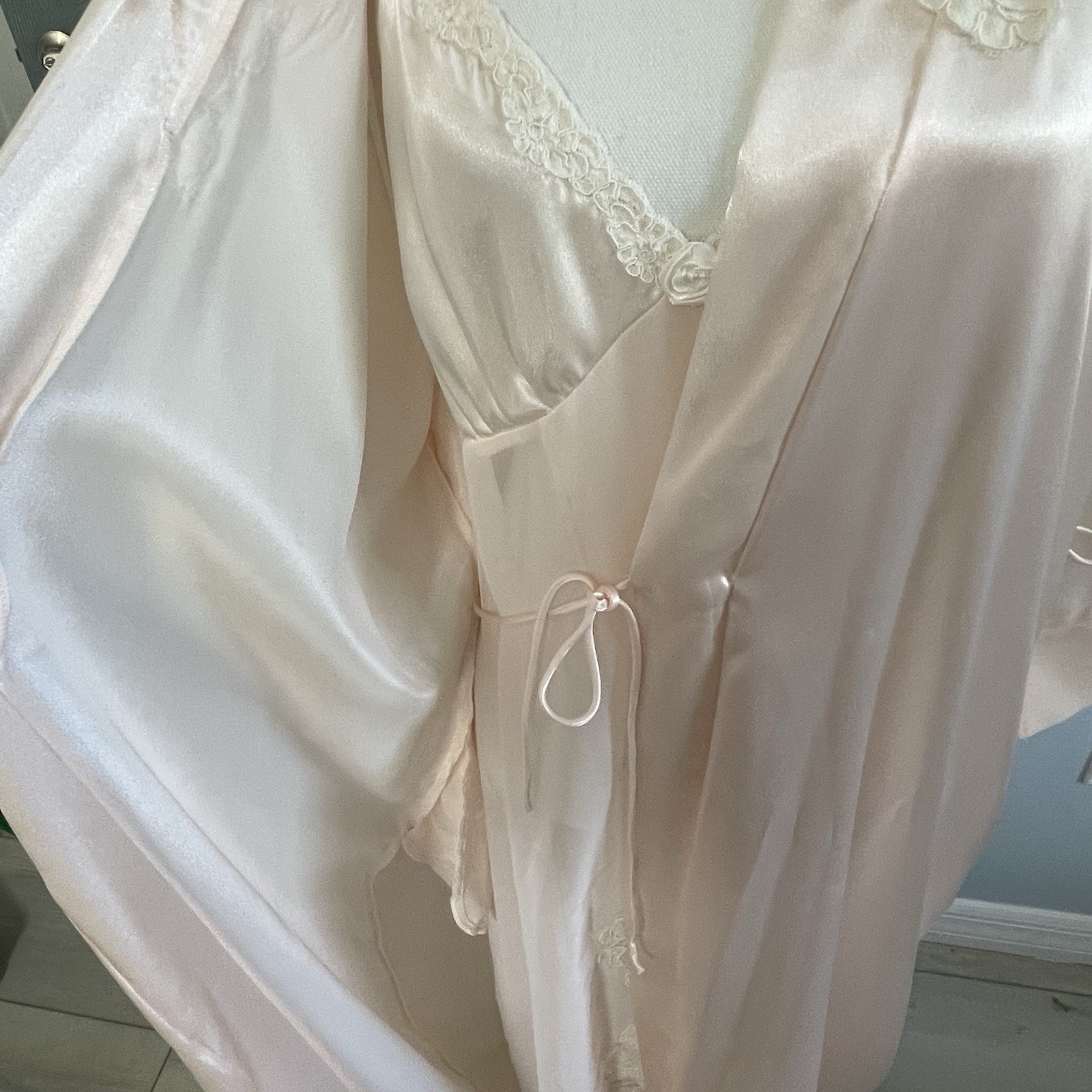 как выглядит Vintage Cinema Etoile Womens Nightgown Short Gown Satin Pink Lace Chemise M/L фото