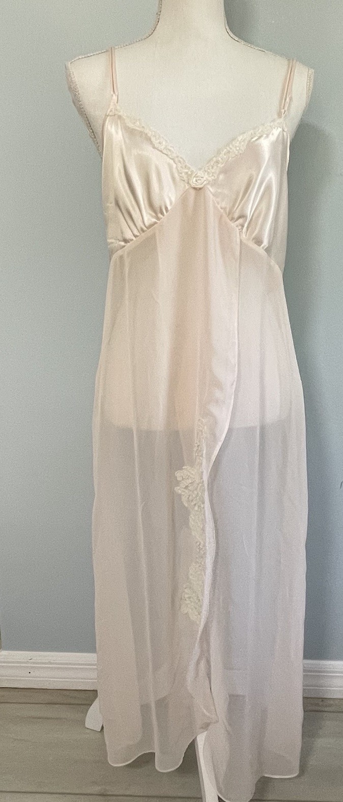 Vintage Cinema Etoile Women's Nightgown Short Gown Satin Pink Lace Chemise M/L