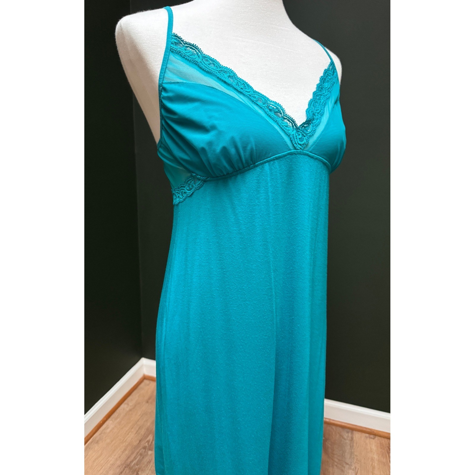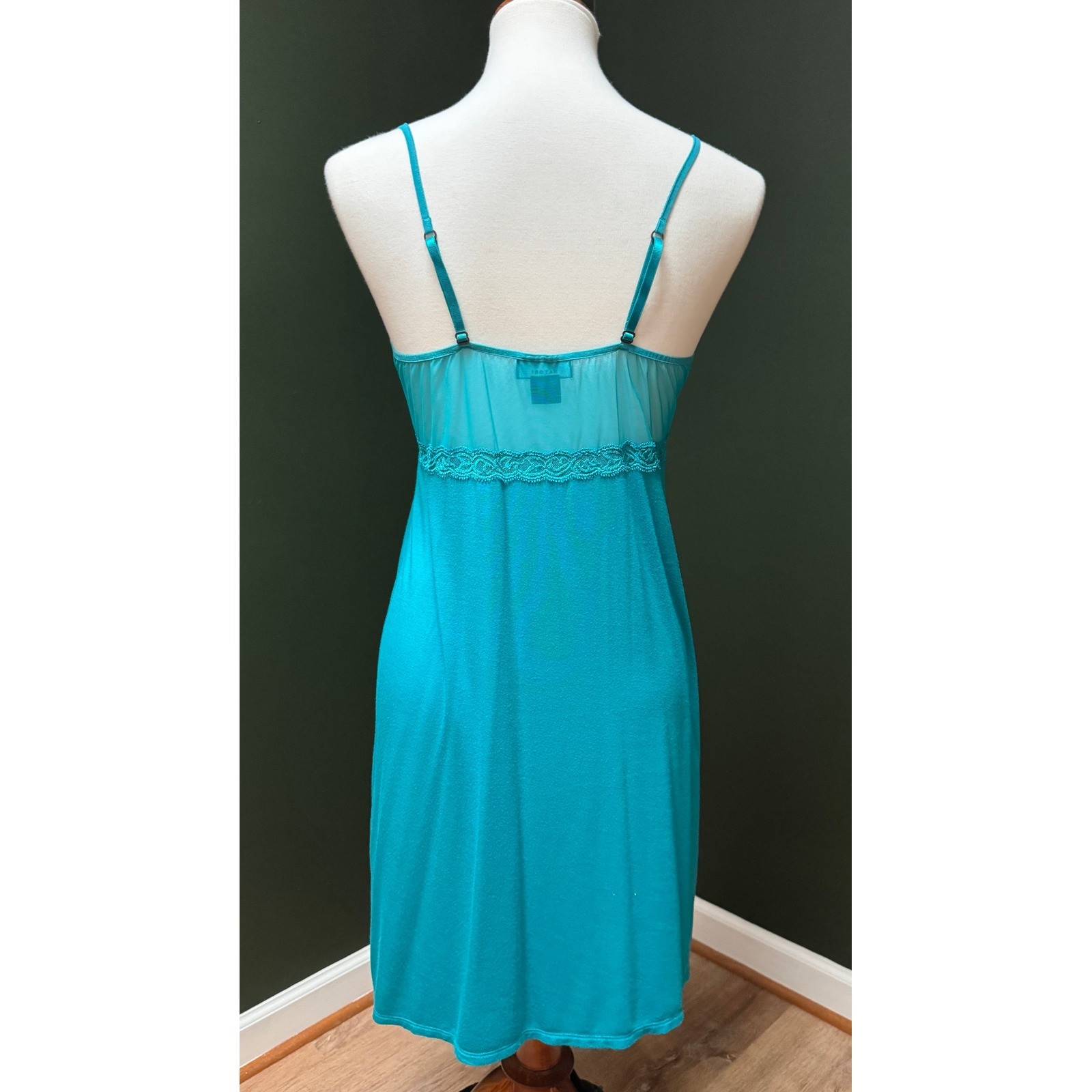 как выглядит Natori Lace Trim Teal Blue Slip Dress Womens Size L фото