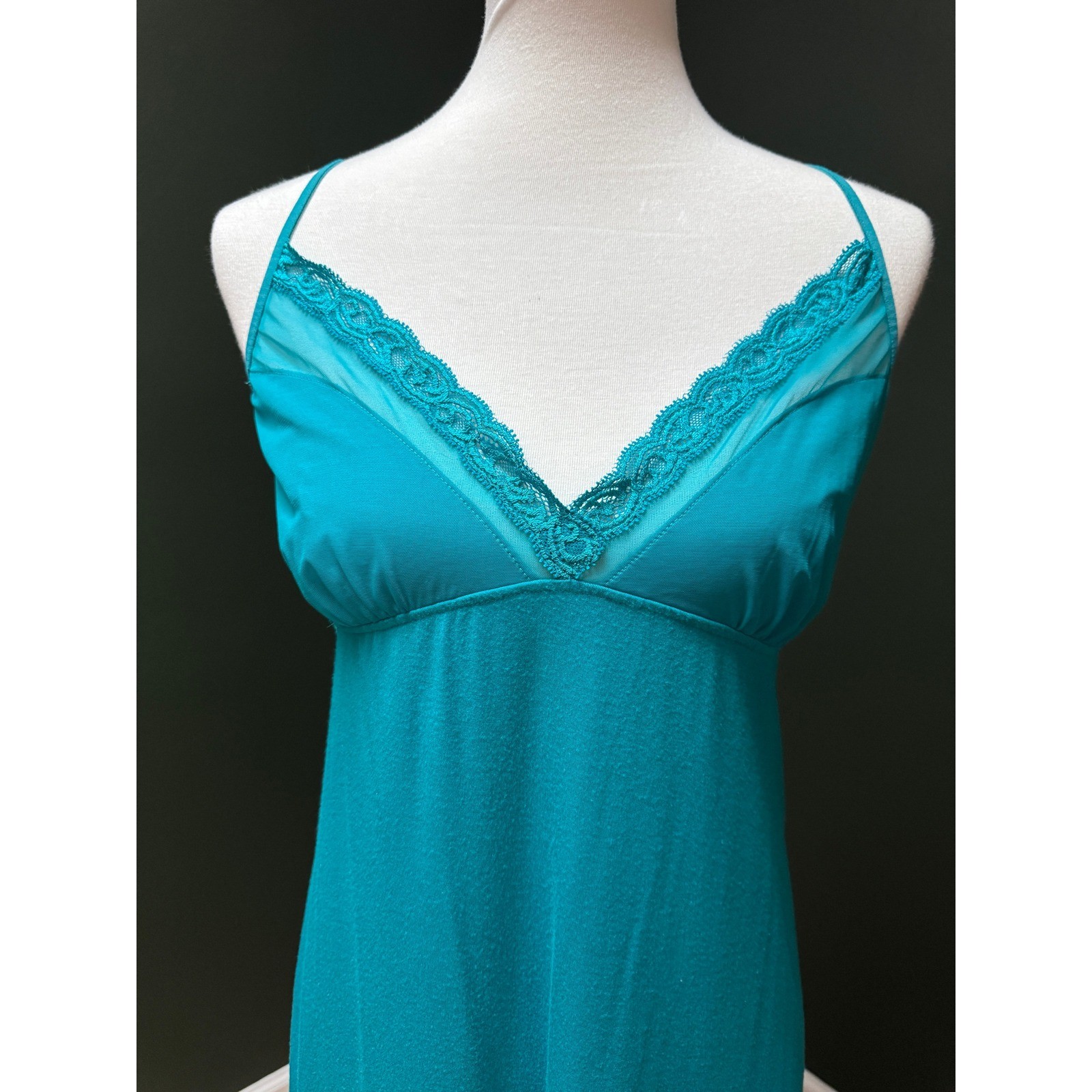 как выглядит Natori Lace Trim Teal Blue Slip Dress Women