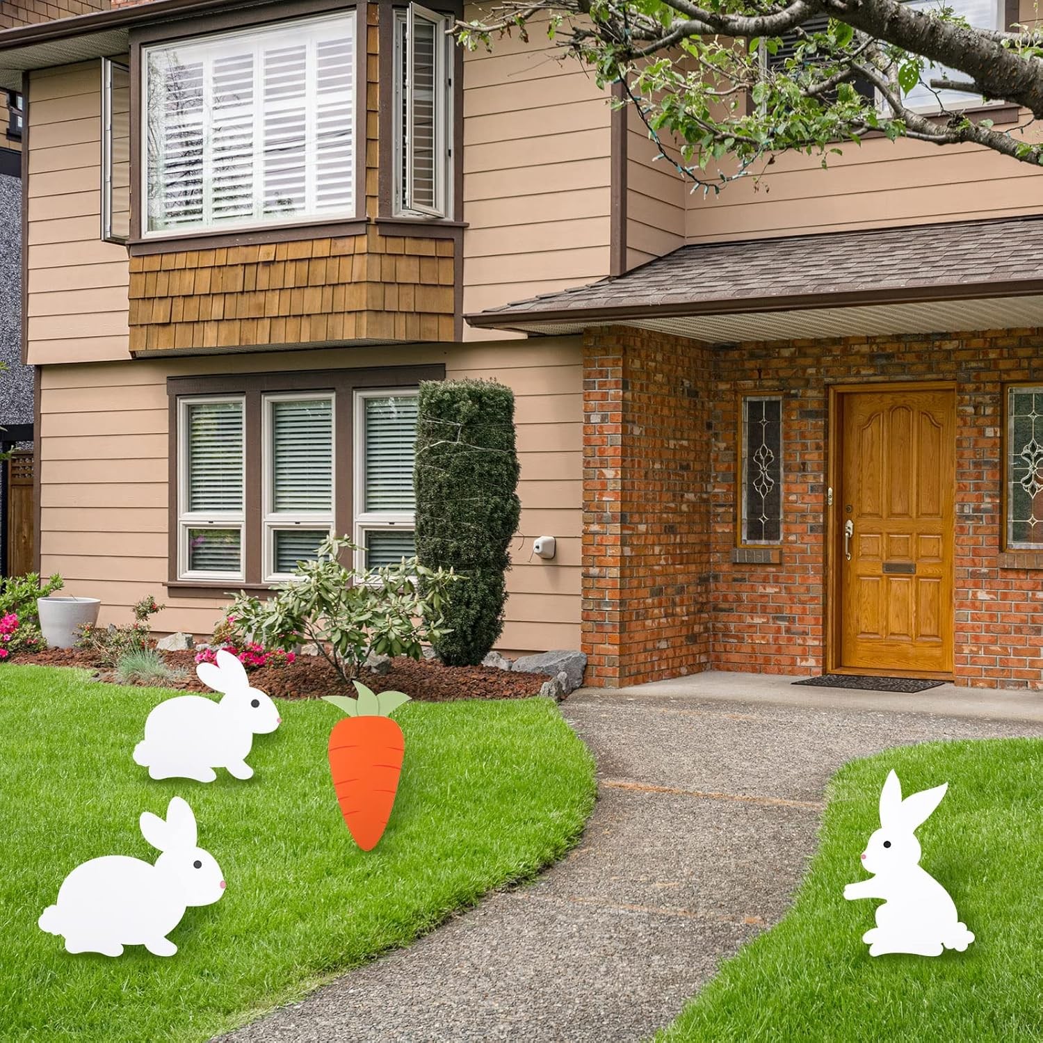 Yookeer Easter Yard Signs 4-Pk Two-Sided Bunny Carrot Lawn D cor, No Stakes