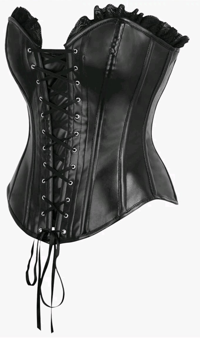 как выглядит New Daisys Corset Faux Leather Black Lace Trim Lace-Up Steel Boned CorsetSz M фото