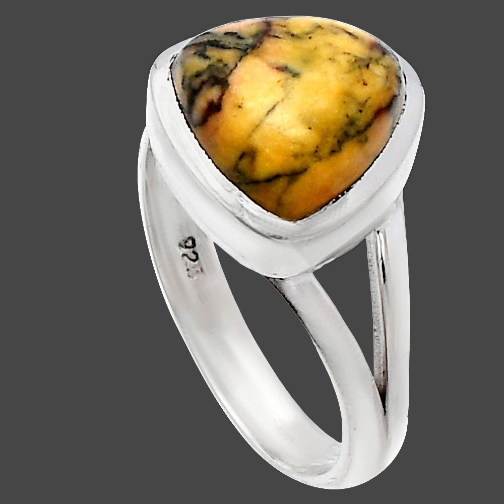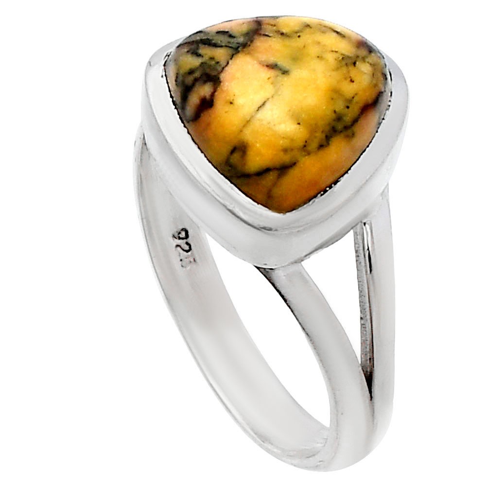 Natural Honey Dendritic Opal 925 Sterling Silver Ring s.7 Jewelry R-1005