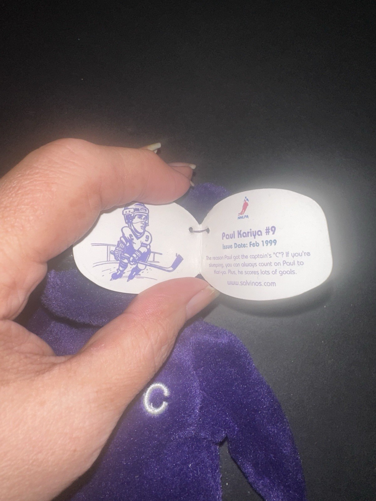 как выглядит Salvinos Bammers -Paul Kariya 9- 1999 Anaheim Mighty Ducks, NHL Hockey, purple фото