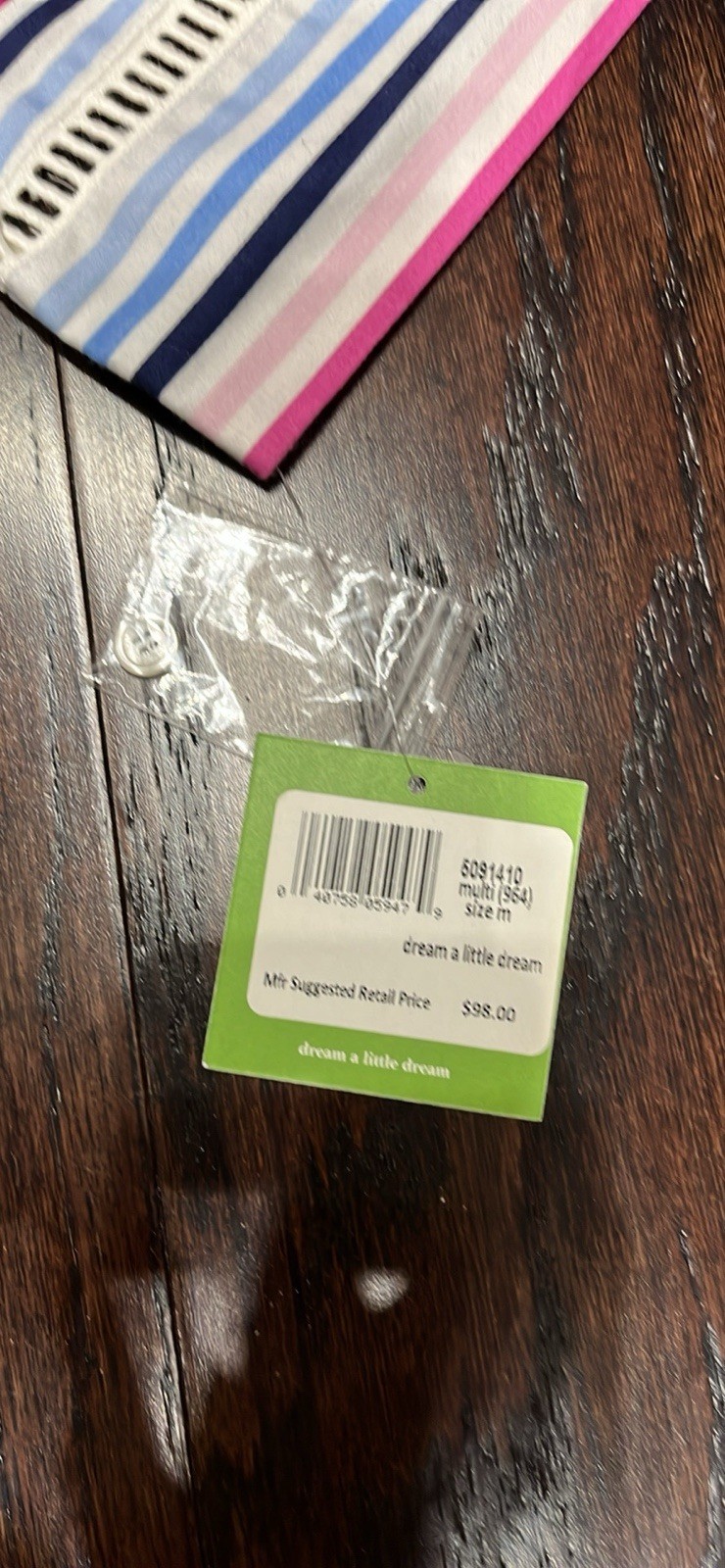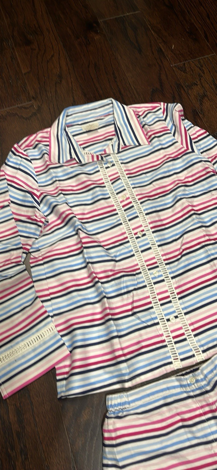 Kate Spade Sz M Dream A Little Dream Pajama Set Striped Capri Pant Button Top