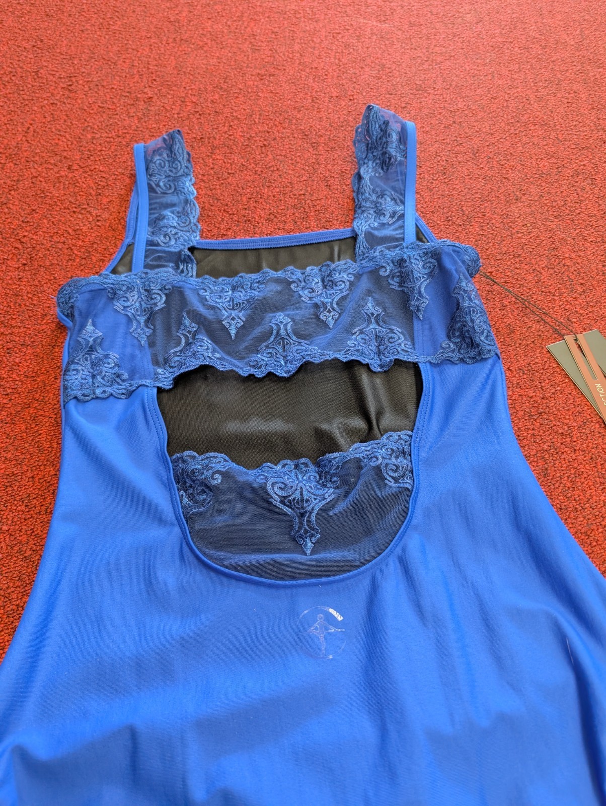 как выглядит Wear Moi Amina Royal Blue Tank Leotard Romantic Lace Straps Open Back Ballet NWT фото