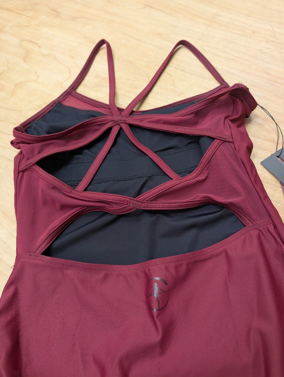 как выглядит Wear Moi Harlow Burgundy Cami Leotard with Mesh and Strappy Mesh Back Dance NWT фото