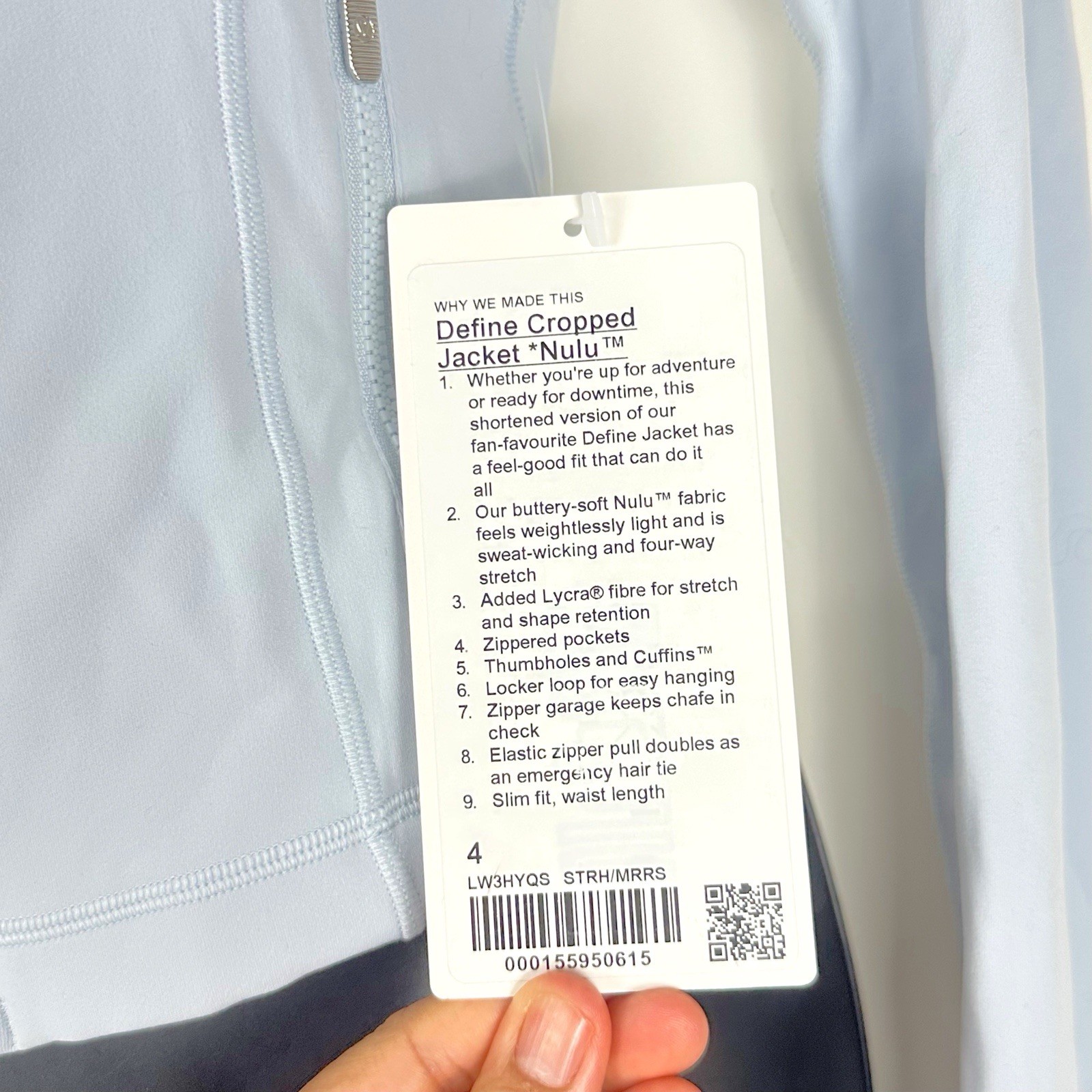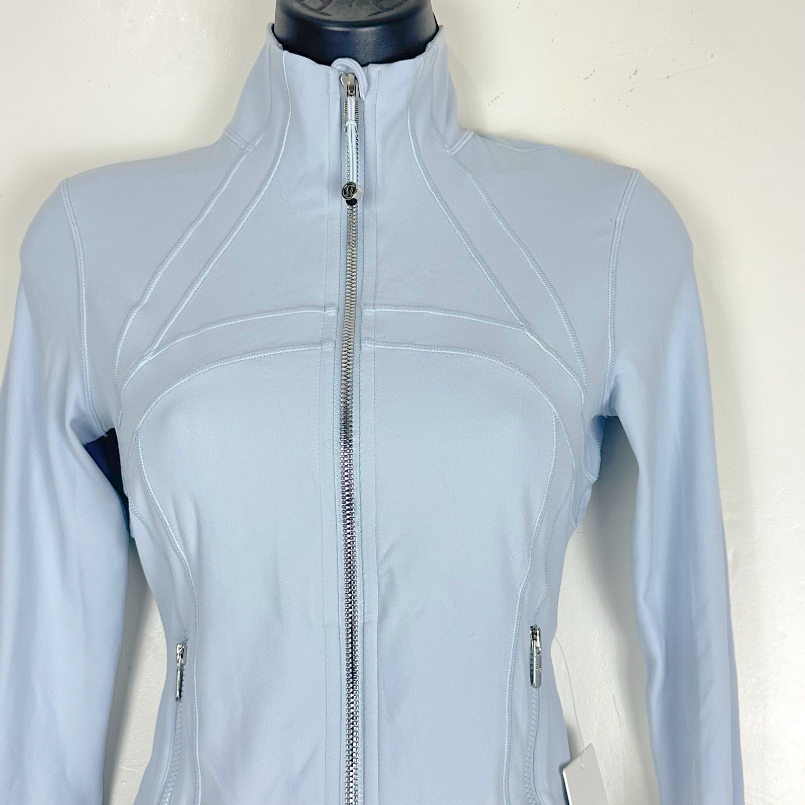 как выглядит Lululemon Define Cropped Jacket Nulu Starch Blue / Mirror Silver Rare Sold Out фото