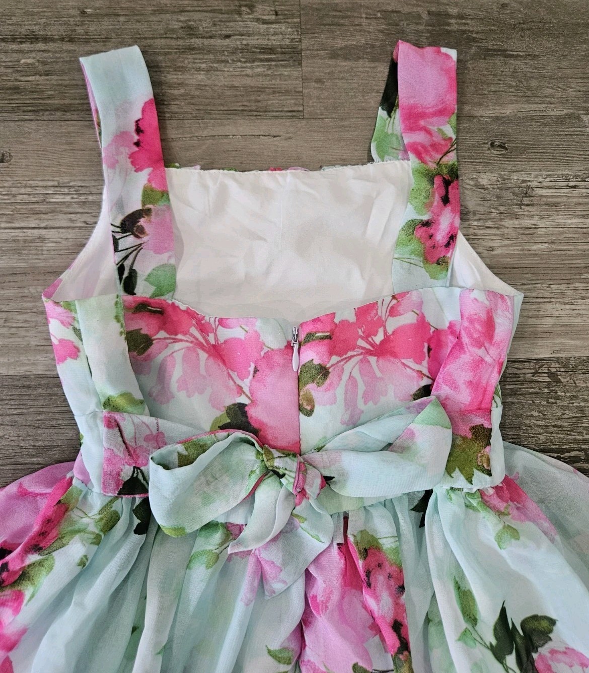 как выглядит Girls 8 Floral Bonnie Jean Dress Pale Green Pink Flowers Zipper Bow Fully Lined фото