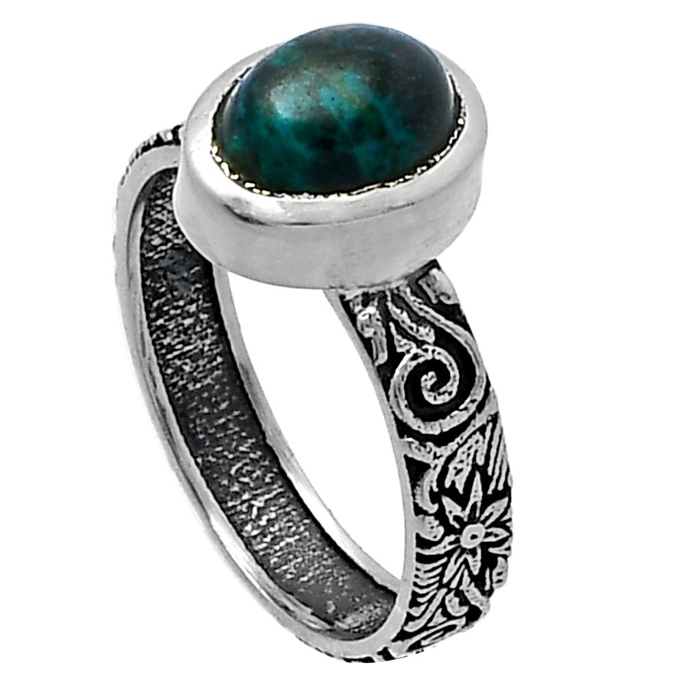 Natural Azurite Chrysocolla 925 Sterling Silver Ring s.6 Jewelry R-1061