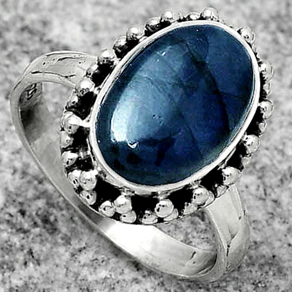 Blue Fire Labradorite - Madagascar 925 Sterling Silver Ring s.7.5 Jewelry R-1096