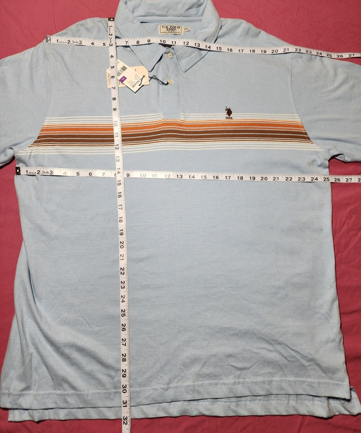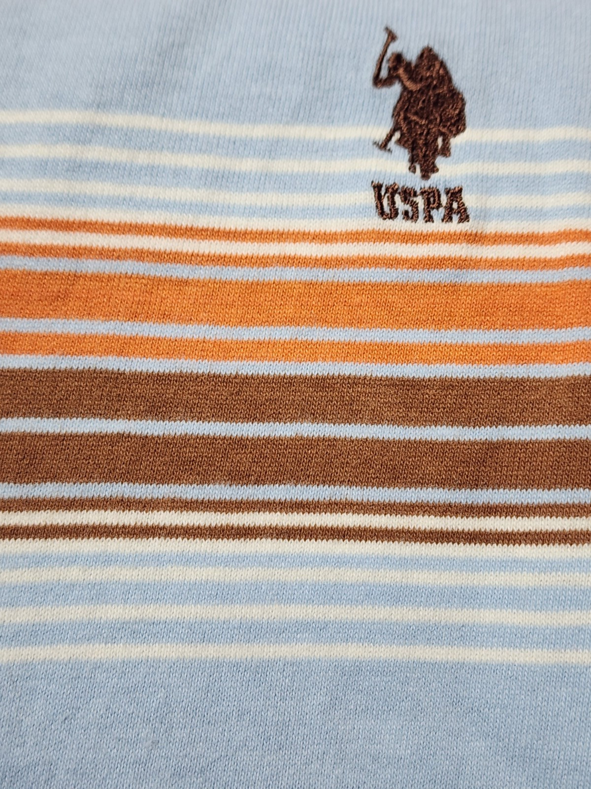как выглядит U.S.Polo Ass. quicksilver shirt mens large strip brown/ blue polo short sleeve фото