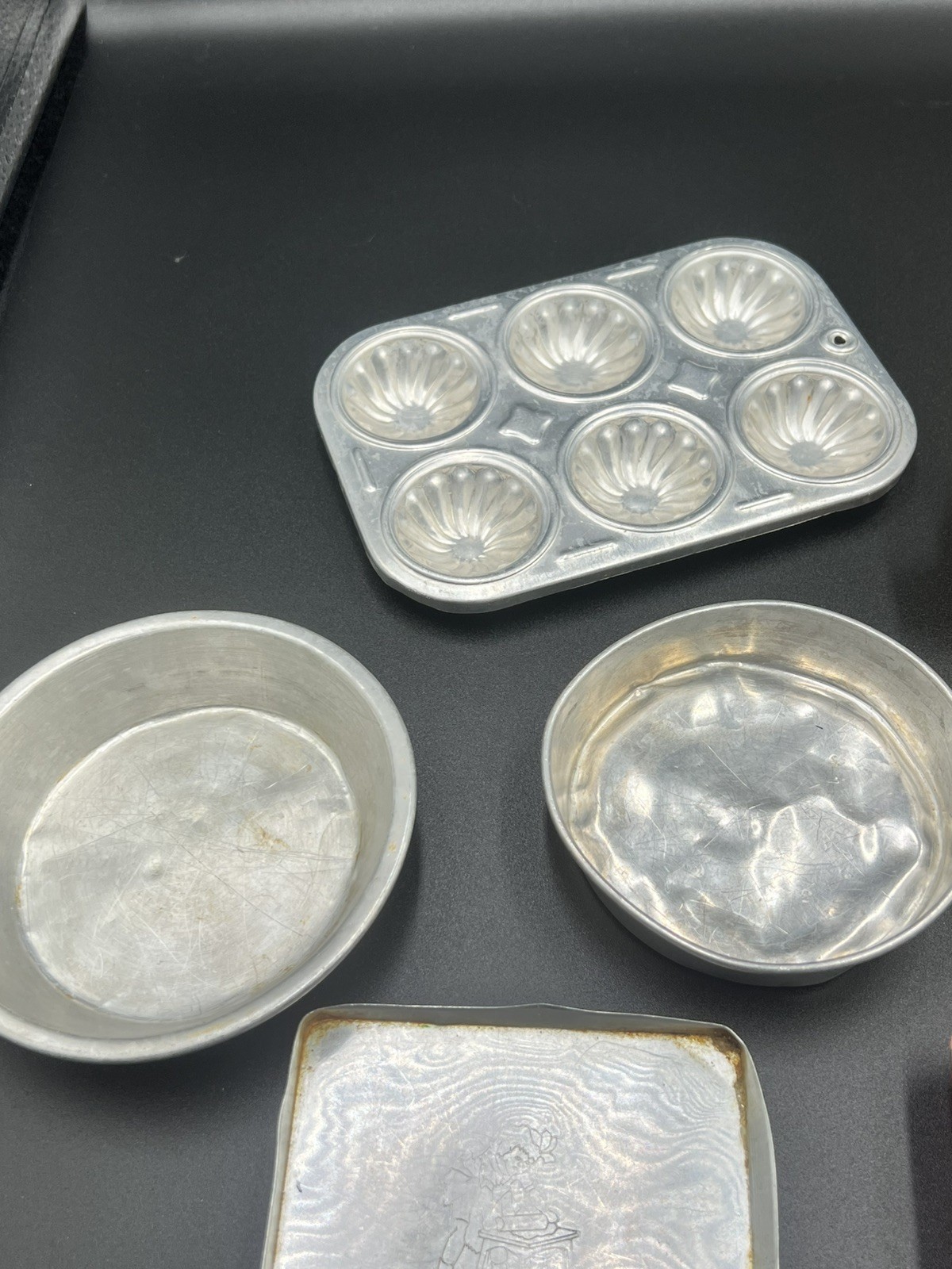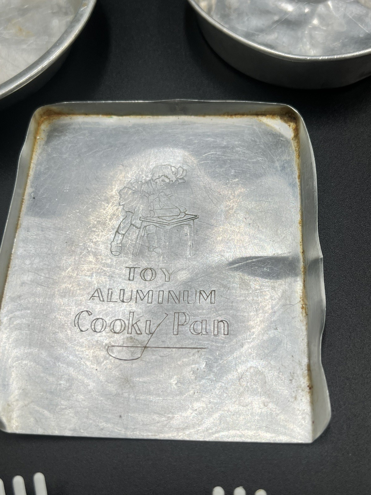 как выглядит Vintage Kids Tin Baking Pans Mixed Chilton Corning Ware Plastic Dishes фото