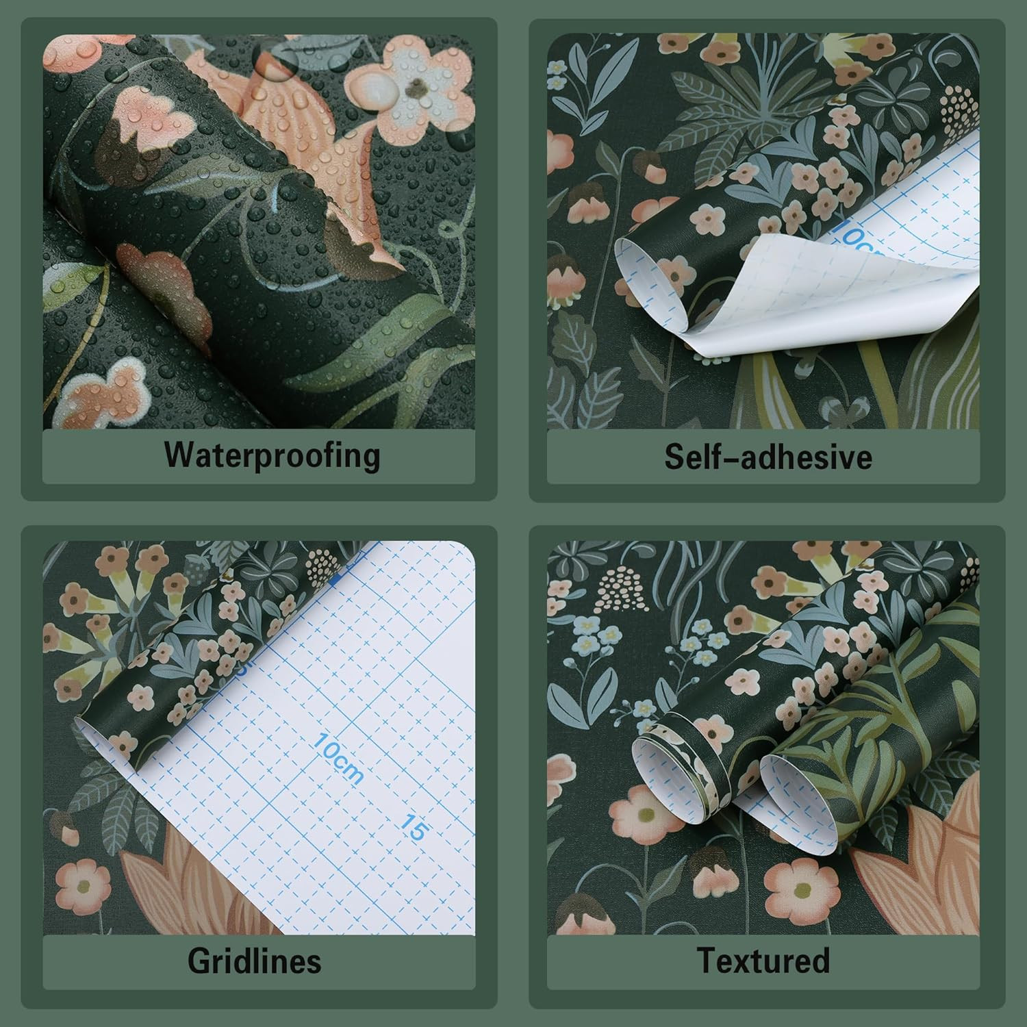 Peel and Stick Wallpaper Vintage Wall Paper Green Floral Contact Paper Removable