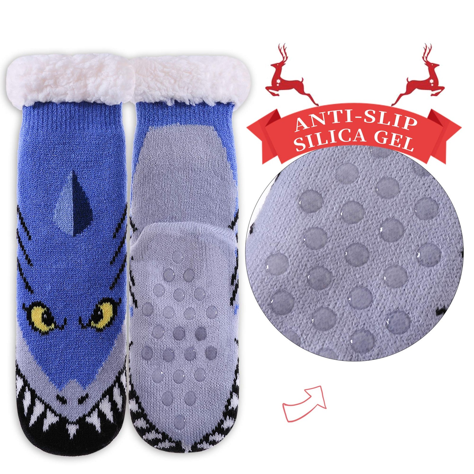 Kids Fuzzy Slipper Socks Boys Girls Soft Cozy Fluffy Grips Socks Winter Warm ...