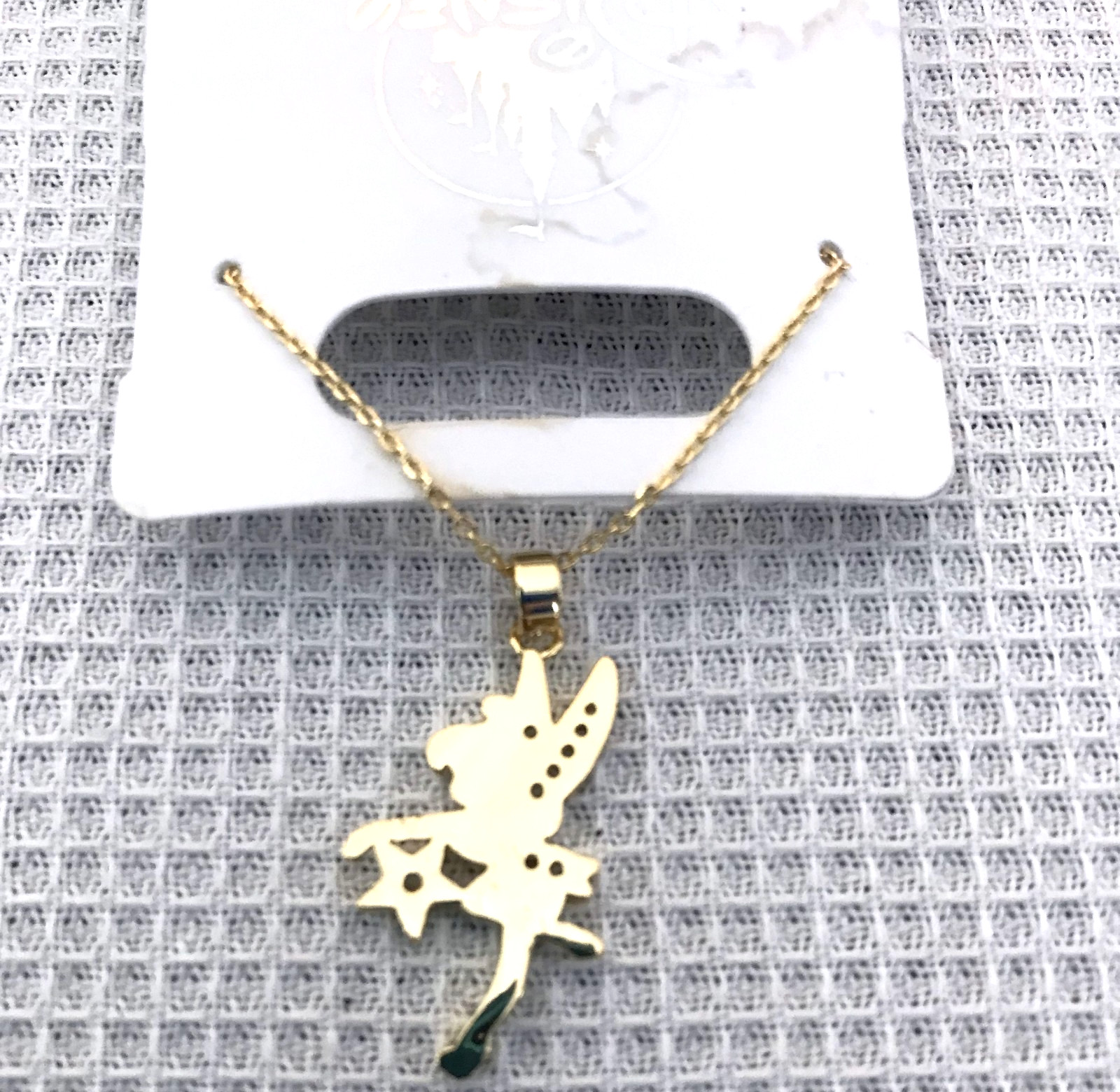 как выглядит Disney Parks Tinkerbell Gold Toned Necklace, New in stained packaging фото
